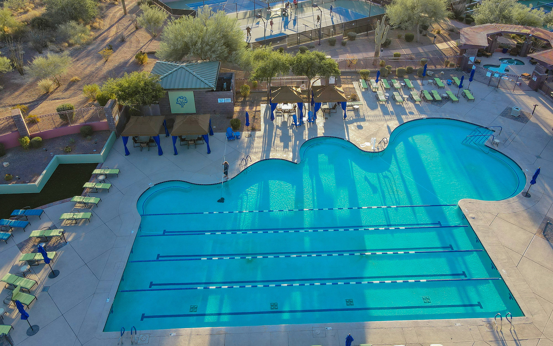 At the Anthem pool, the focus is on fun. The Club is thoroughly appointed with a family pool, kids' pool, lounging area and cabanas with table seating, and is the hub of the summer social scene. The Oasis Poolside Bar serves up delicious bites and refreshing drinks to keep you energized for fun. Whether you need a quick dive in to cool off or want to lounge in one of our cabanas with a book and a cocktail, our Anthem private pool can’t be beat.