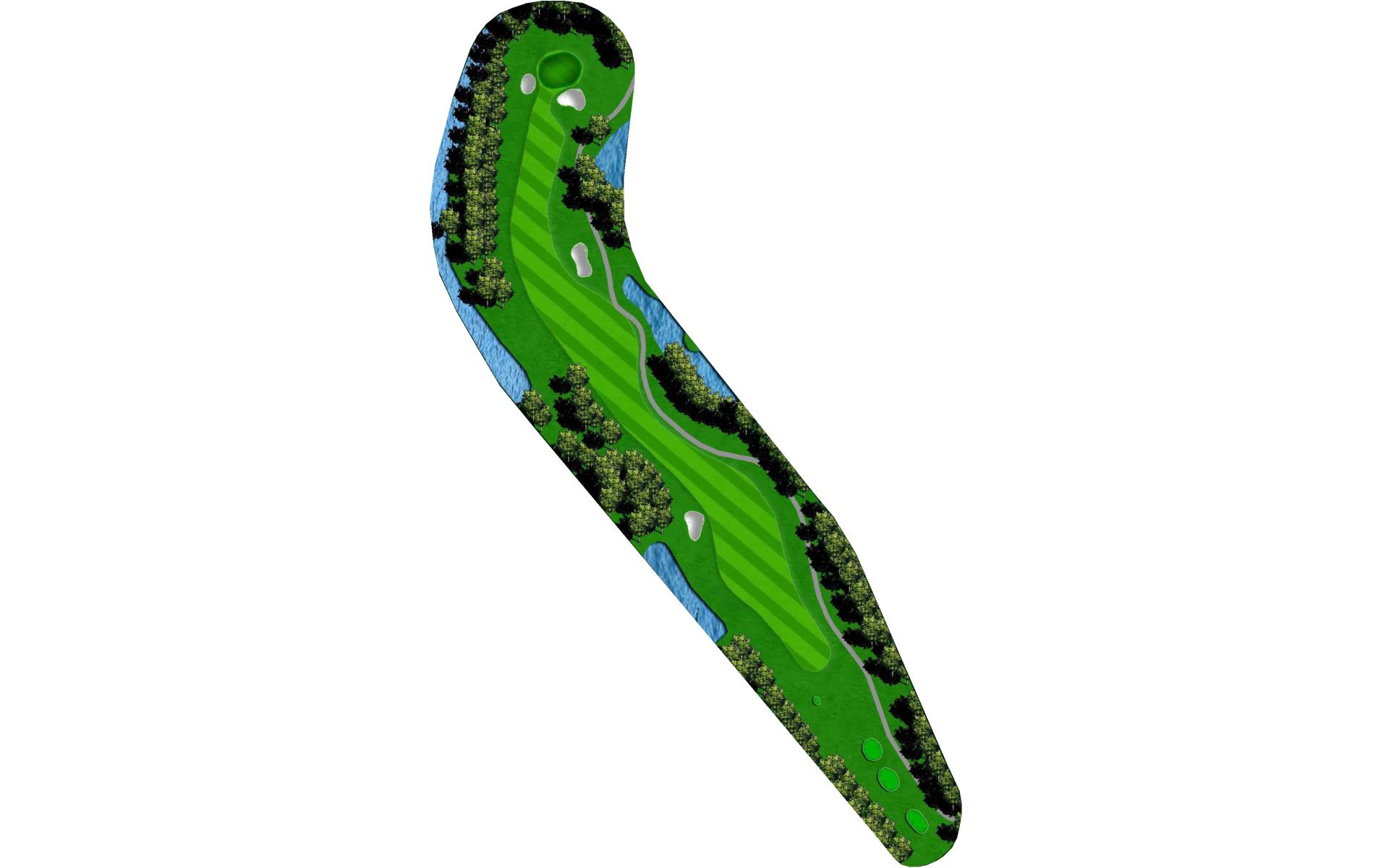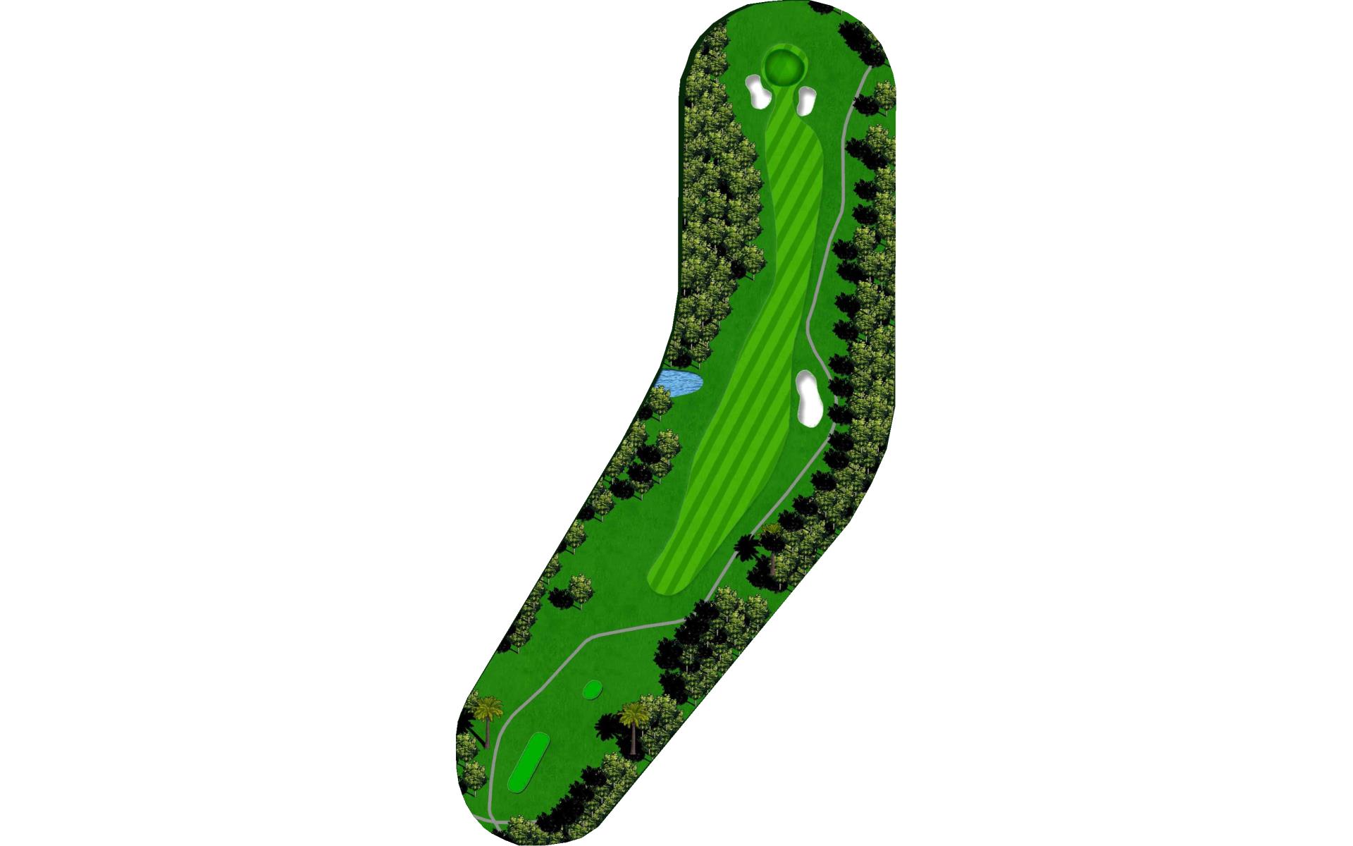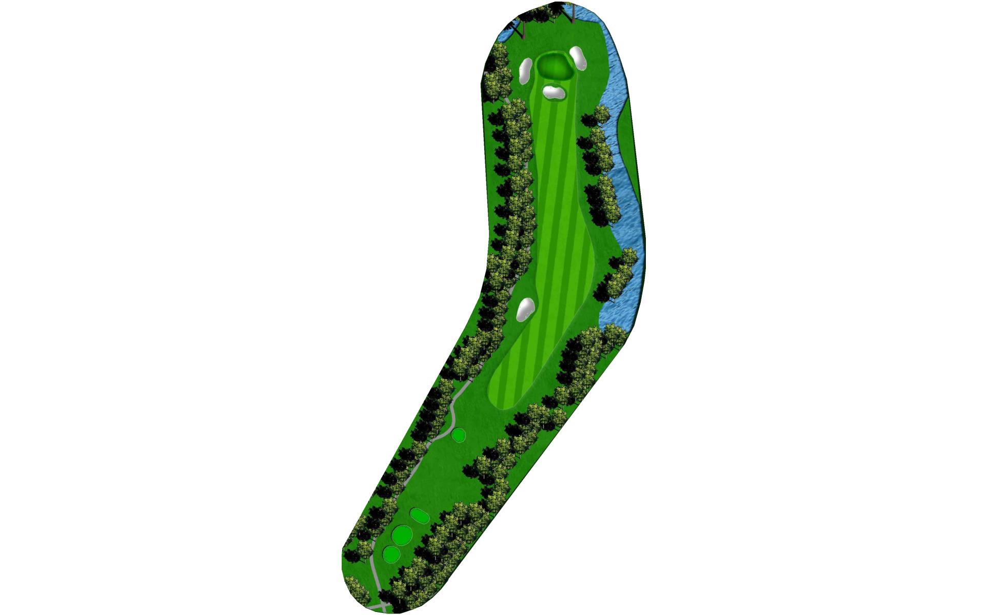Long hitters will cut the corner leaving a short wedge to the green, others will play straight ahead and have a mid iron to the green |