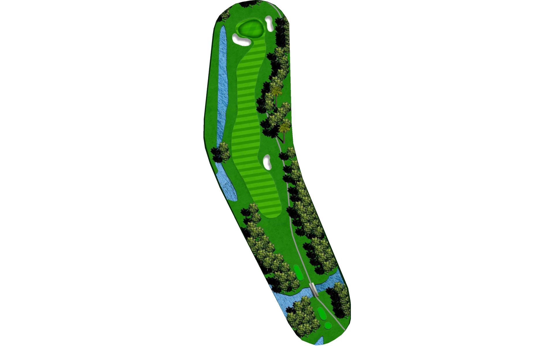 Straight away par 4, want to avoid the fairway bunker on the left side |