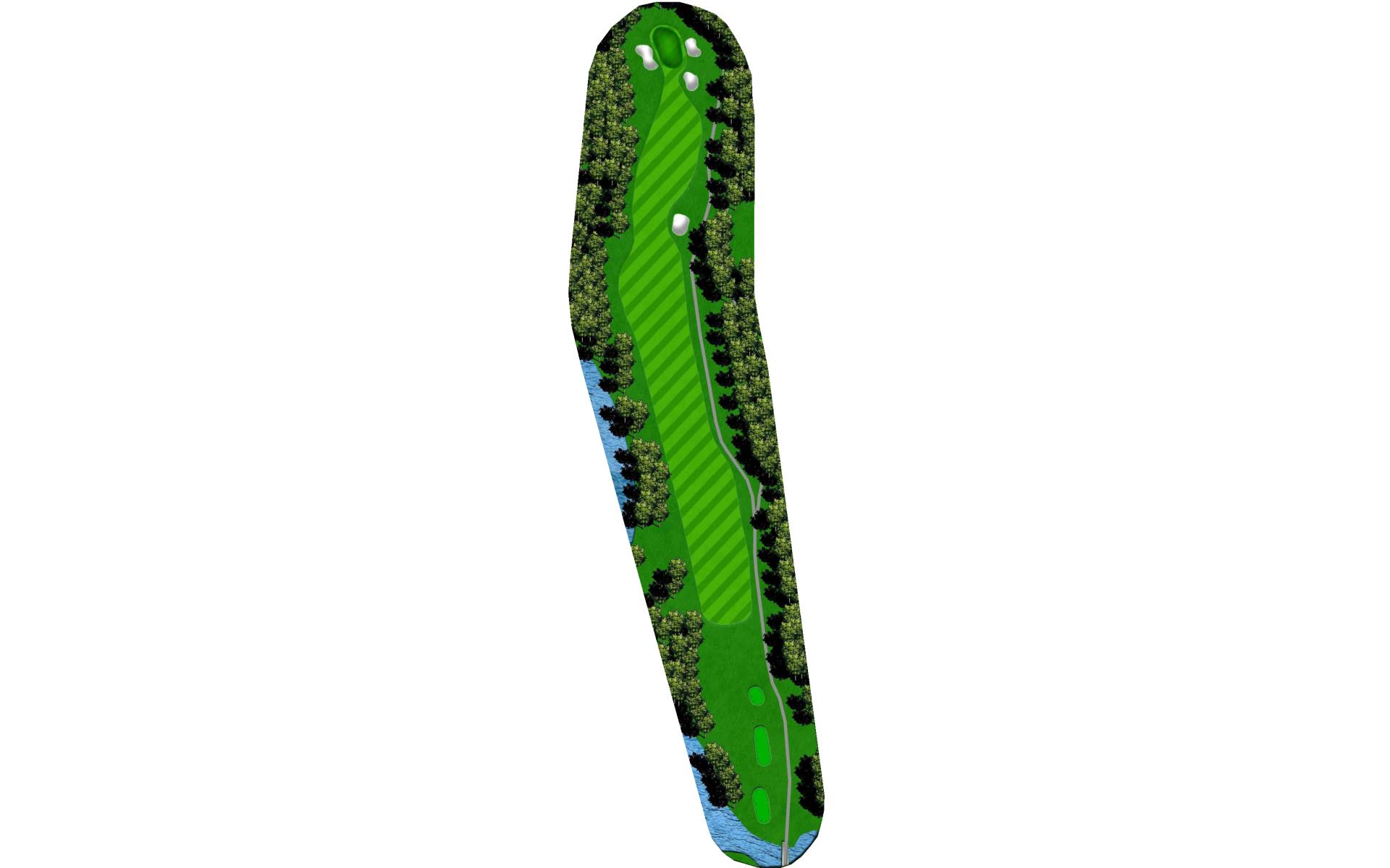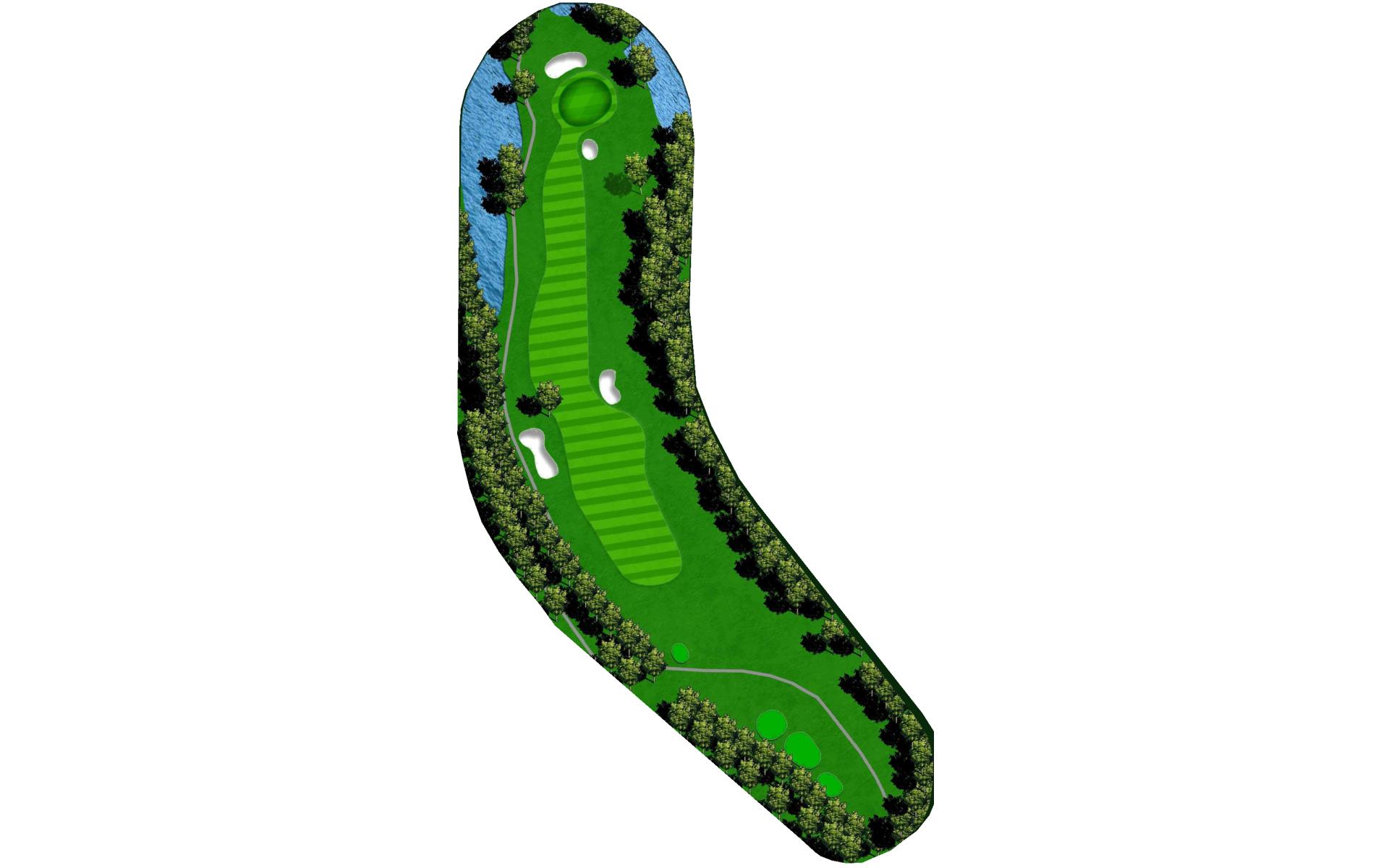 Dogleg right par 4, must be far enough left to have a look at the green for the second shot |