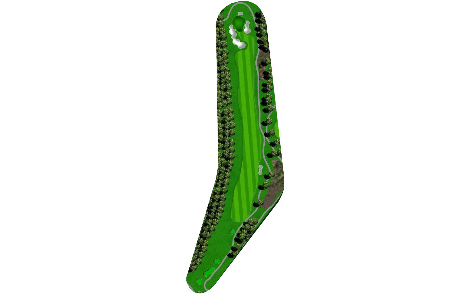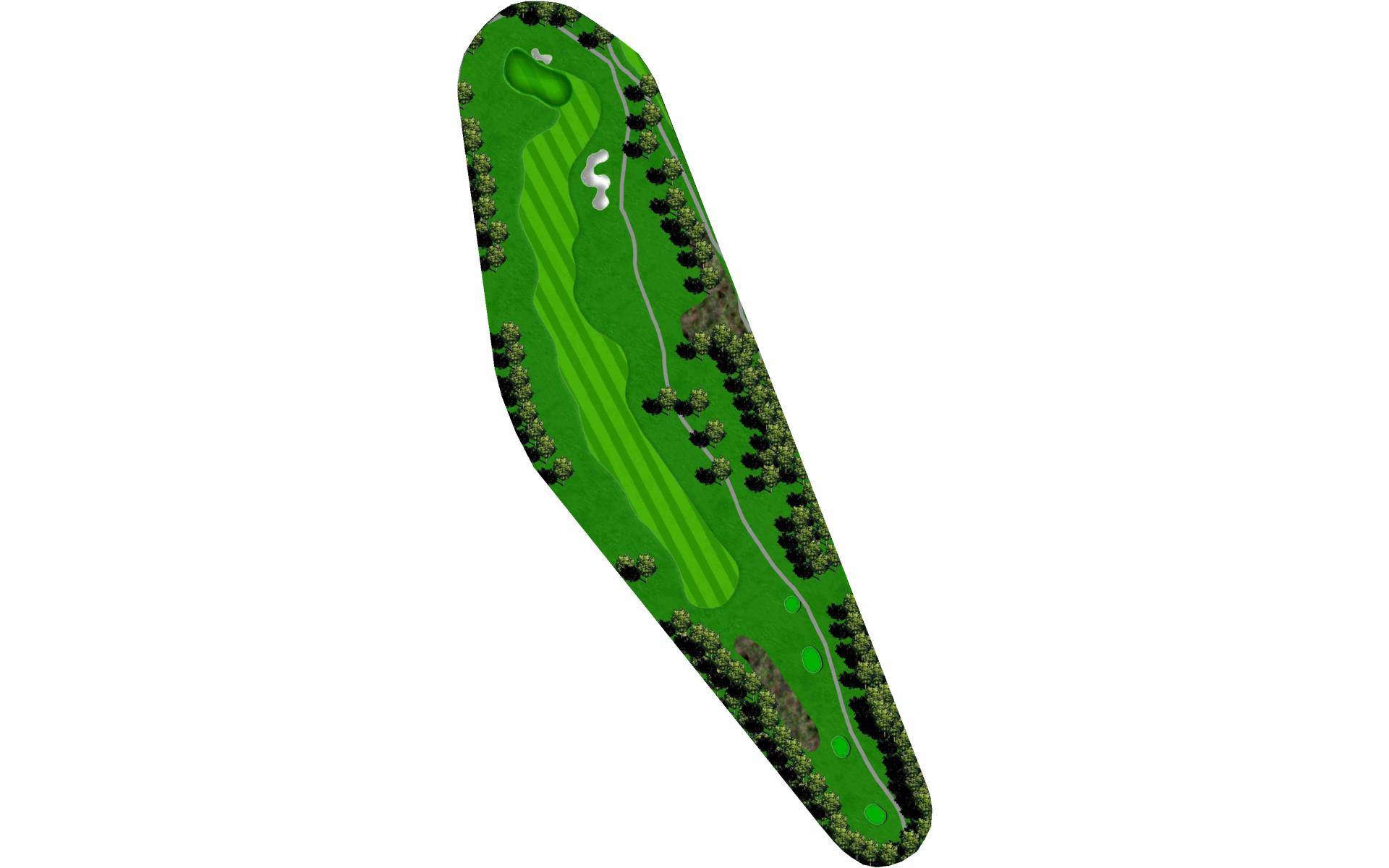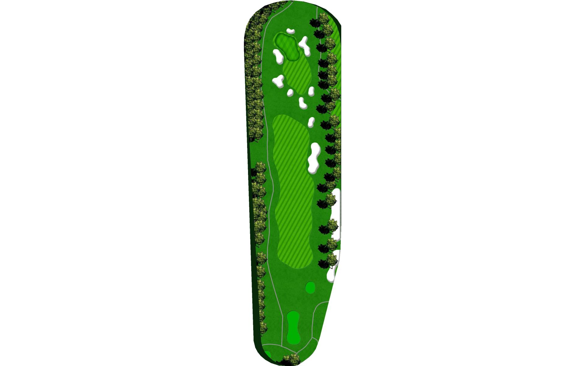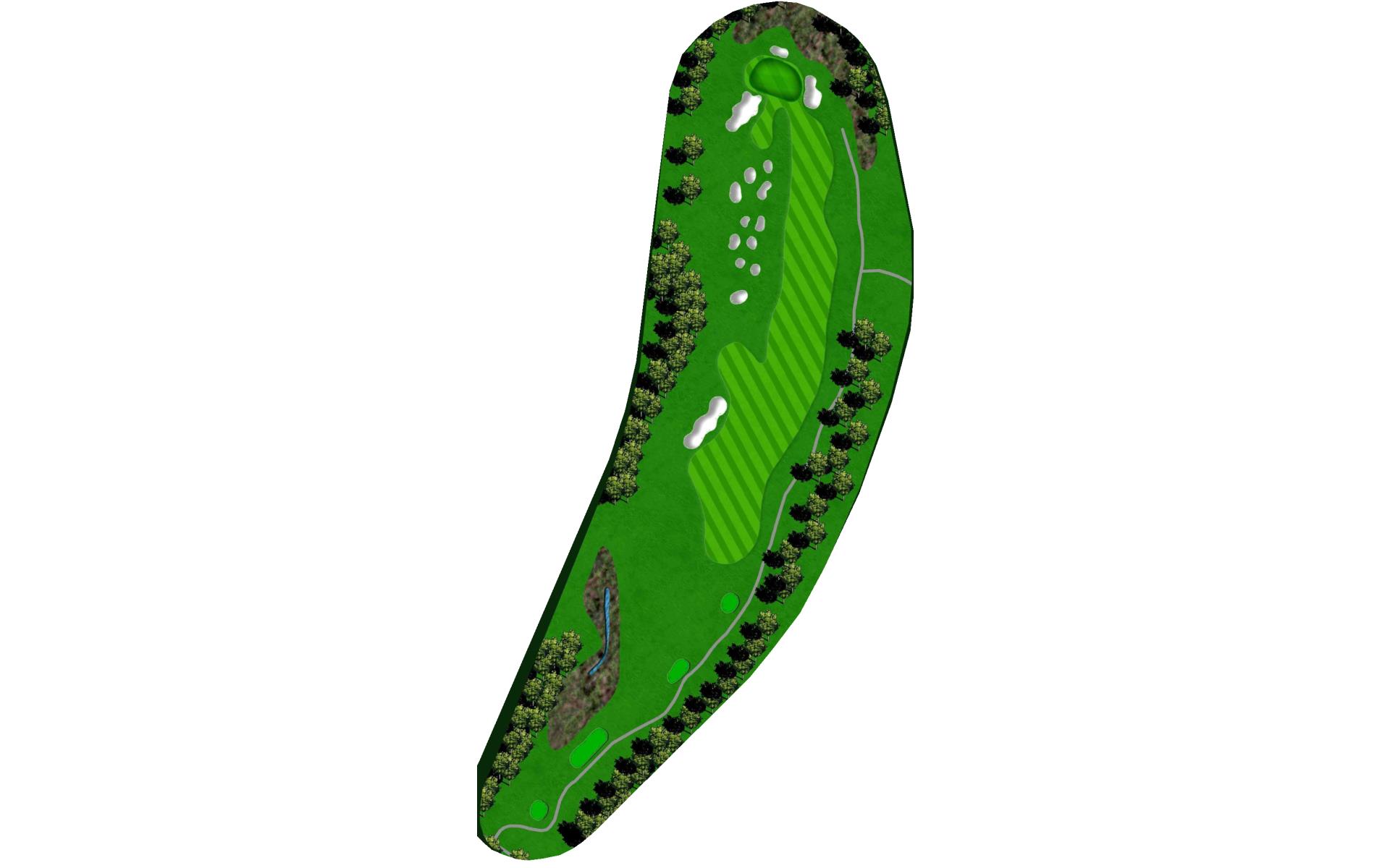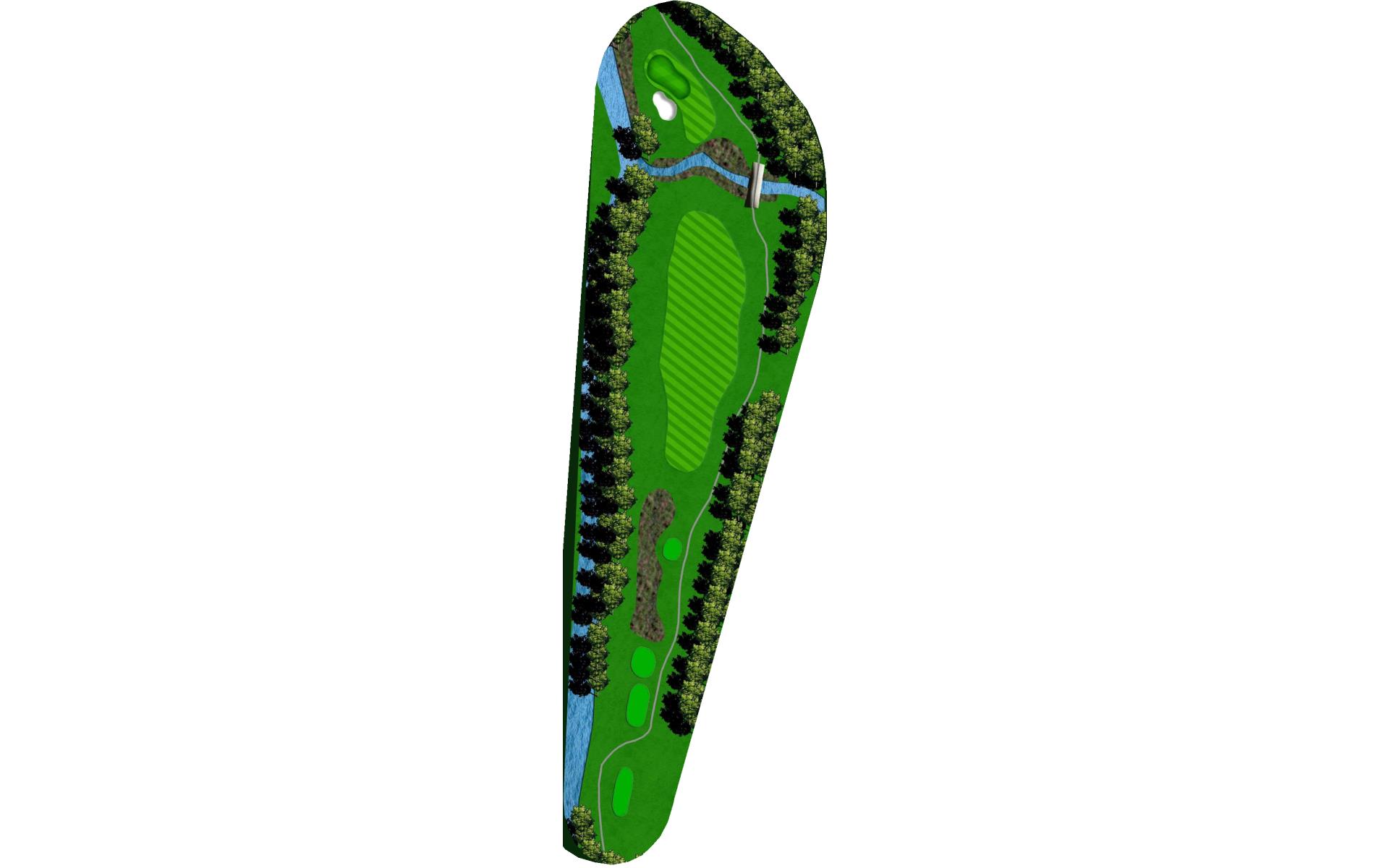 This medium-length par 4 is designed to look and play like the 9th at Nevillewood, one of Pennsylvania’s finest golf courses. It plays slightly uphill to a wide fairway. The approach shots must carry three ponds that guard the front right side of the putting surface.