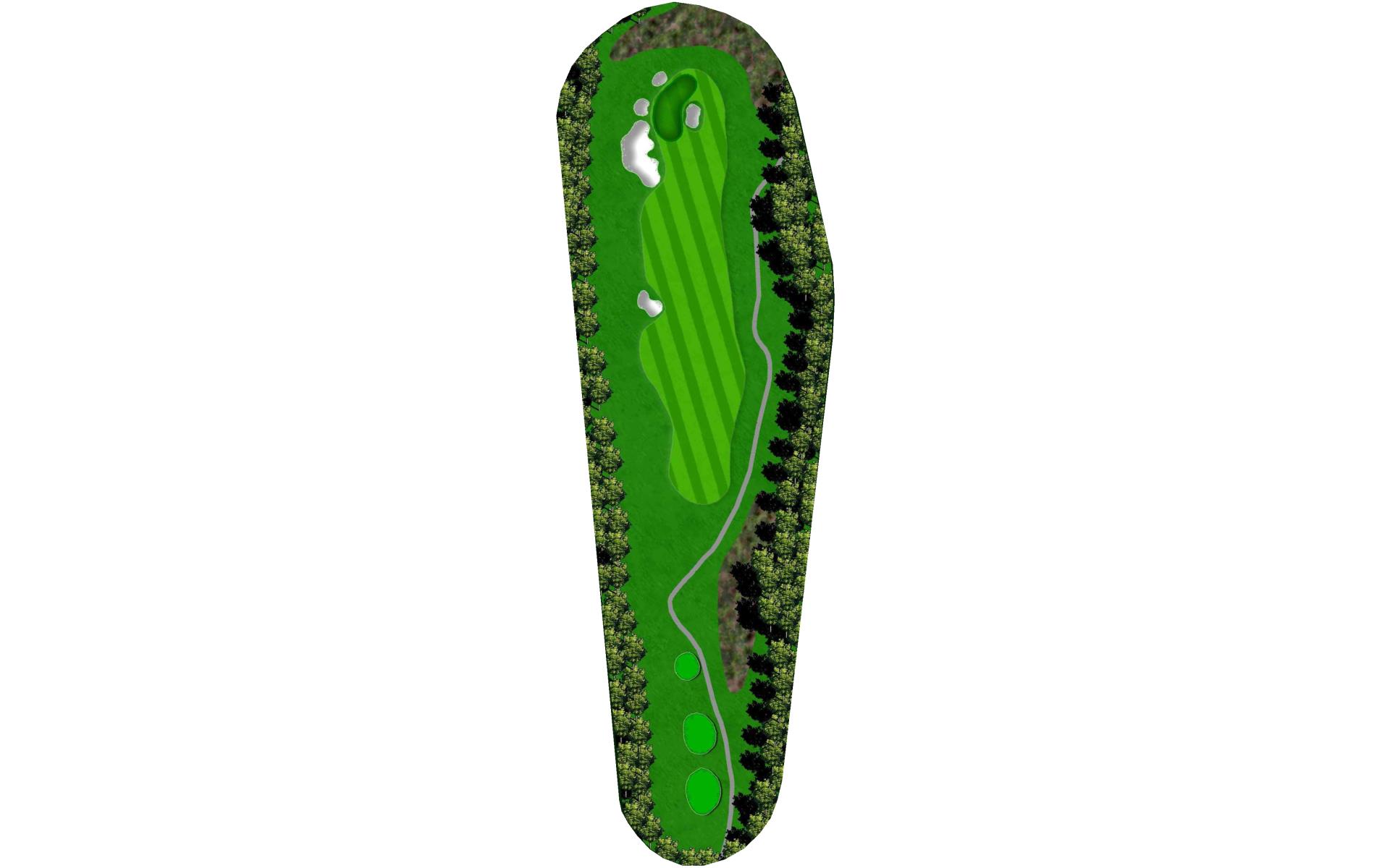 The third will make you feel like you’re playing the #3 ranked golf course in Tennessee, Spring Creek Ranch. It’s a par 3 with a multi-tiered green that’s guarded in front by a dry streambed. Bunkers protect all sides of this putting surface, one on the left and two on the right.