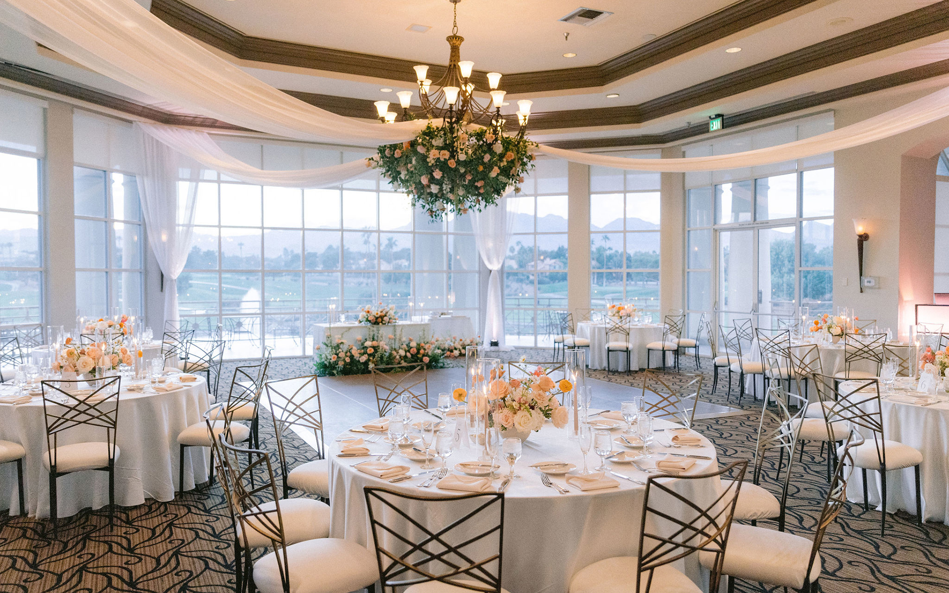 Have your wedding ceremony and reception in a private country club setting. The Canyon Gate Ballroom is enclosed with 25-foot glass windows and an expansive balcony overlooking the beautifully manicured golf course and Red Rock Mountains. Canyon Gate is among the most ideal and picturesque Las Vegas wedding places. Watch the sunset as you wine and dine with your closest family and friends, then party the night away.