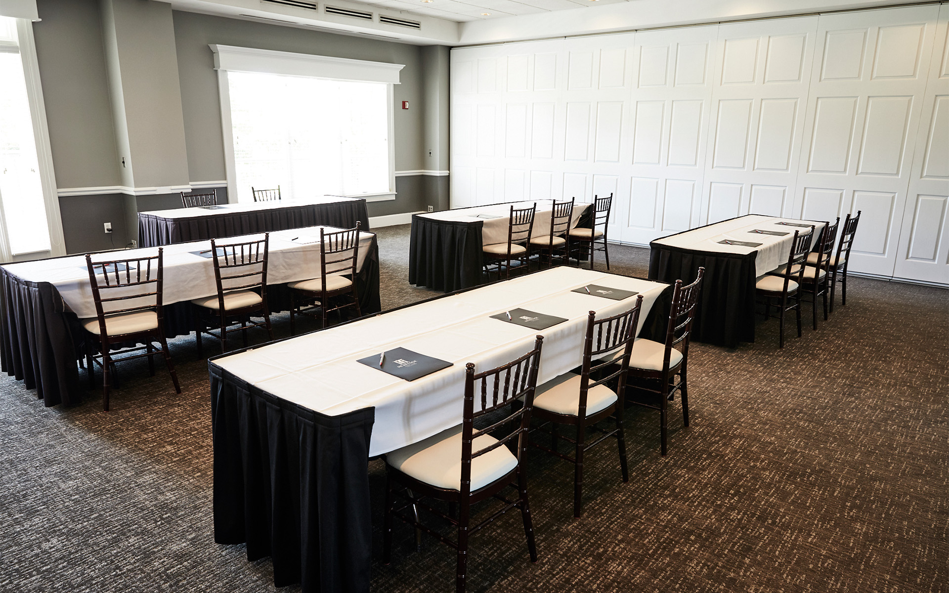 We offer a private location with the best views of our stunning grounds, meeting room(s) for groups of 12 to 250 people, convenient complimentary parking, audiovisual equipment, wireless internet and other business amenities. Dining options include continental and breakfast buffet selections, full-service lunches, afternoon break selections, hors d'oeuvres reception and full-service dinner space.