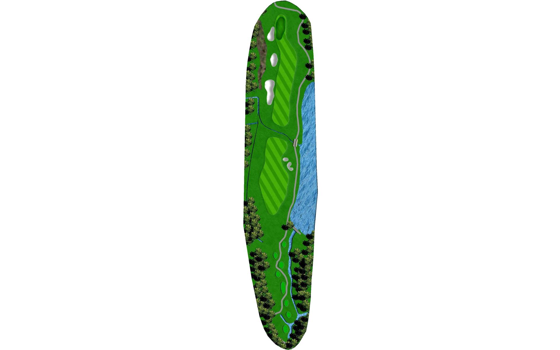 Finishing hole. Long hitters can swing away. Shorter hitters will contend with the fairway bunker.