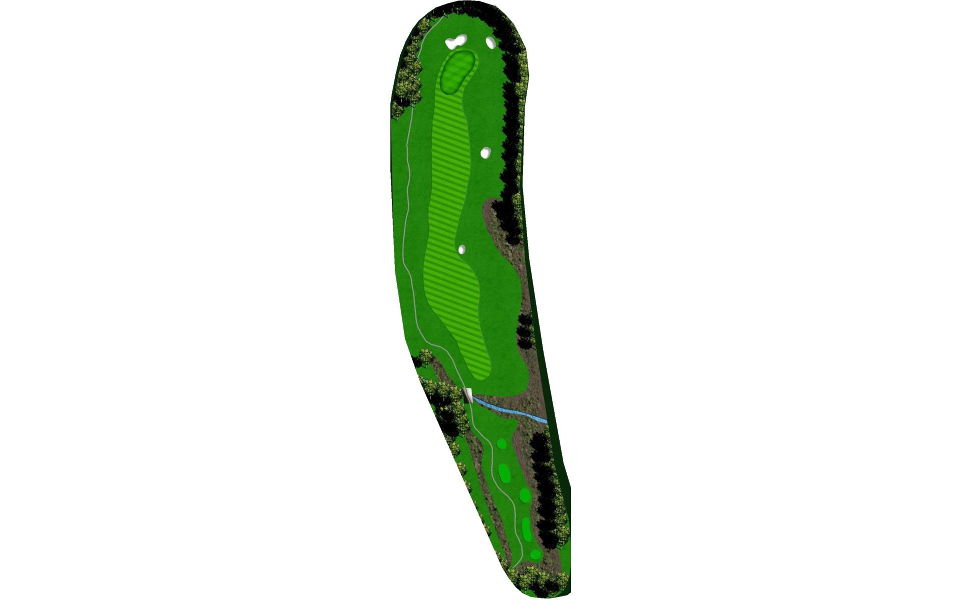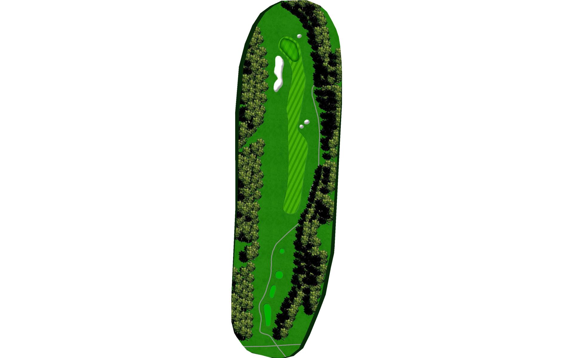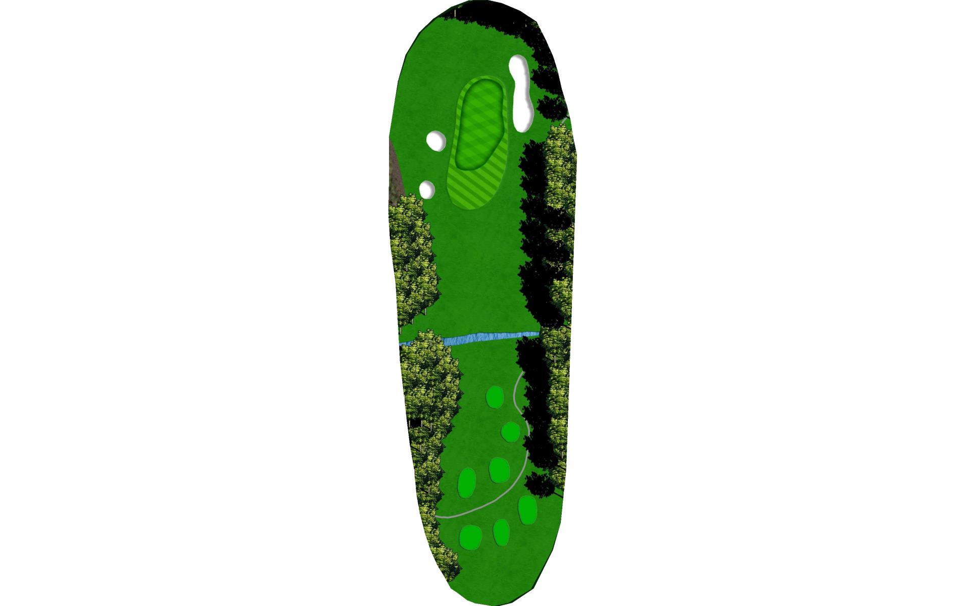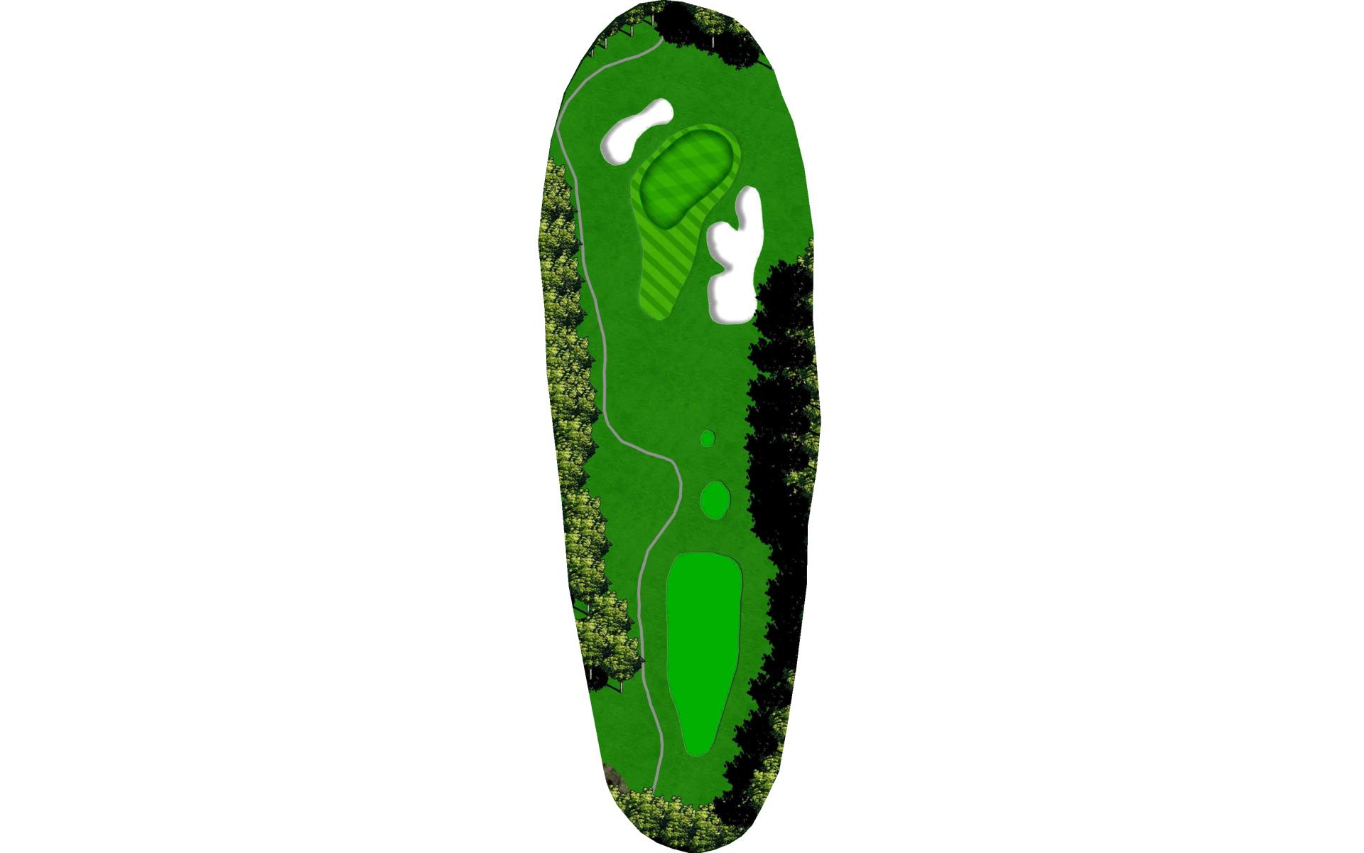 Short par 4. Taking less club off tee will still put you with a short iron to the green. The fairway slopes to the right, so keep that in mind when you’re deciding your starting line.