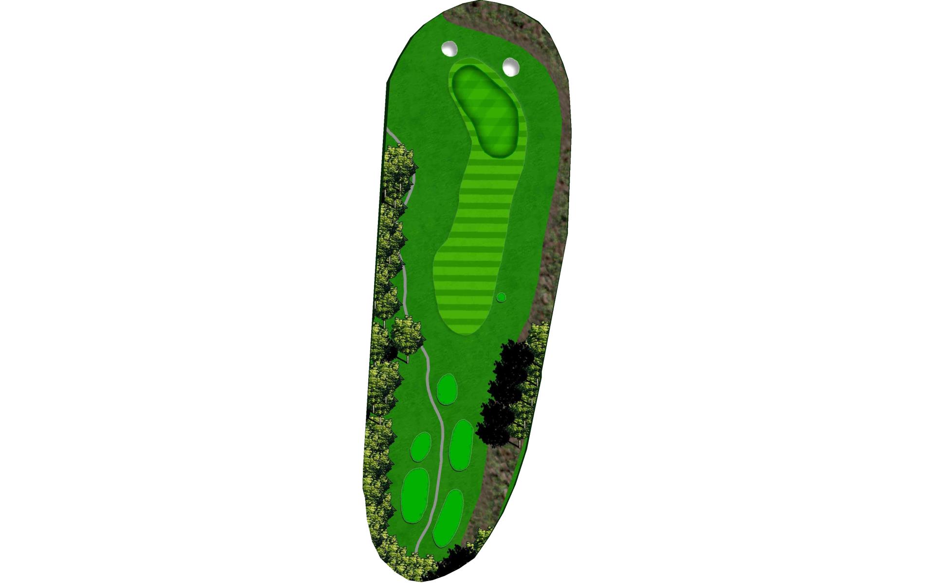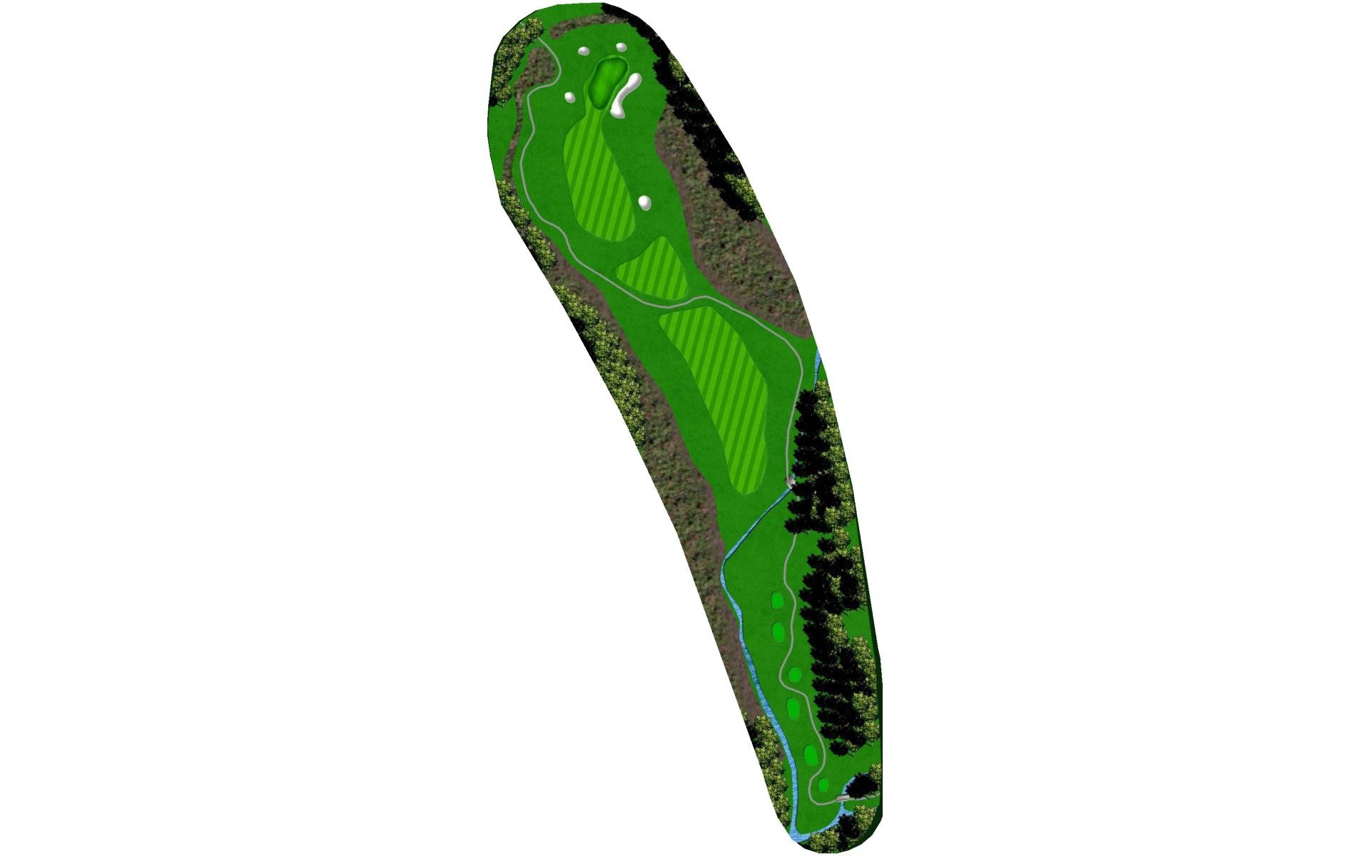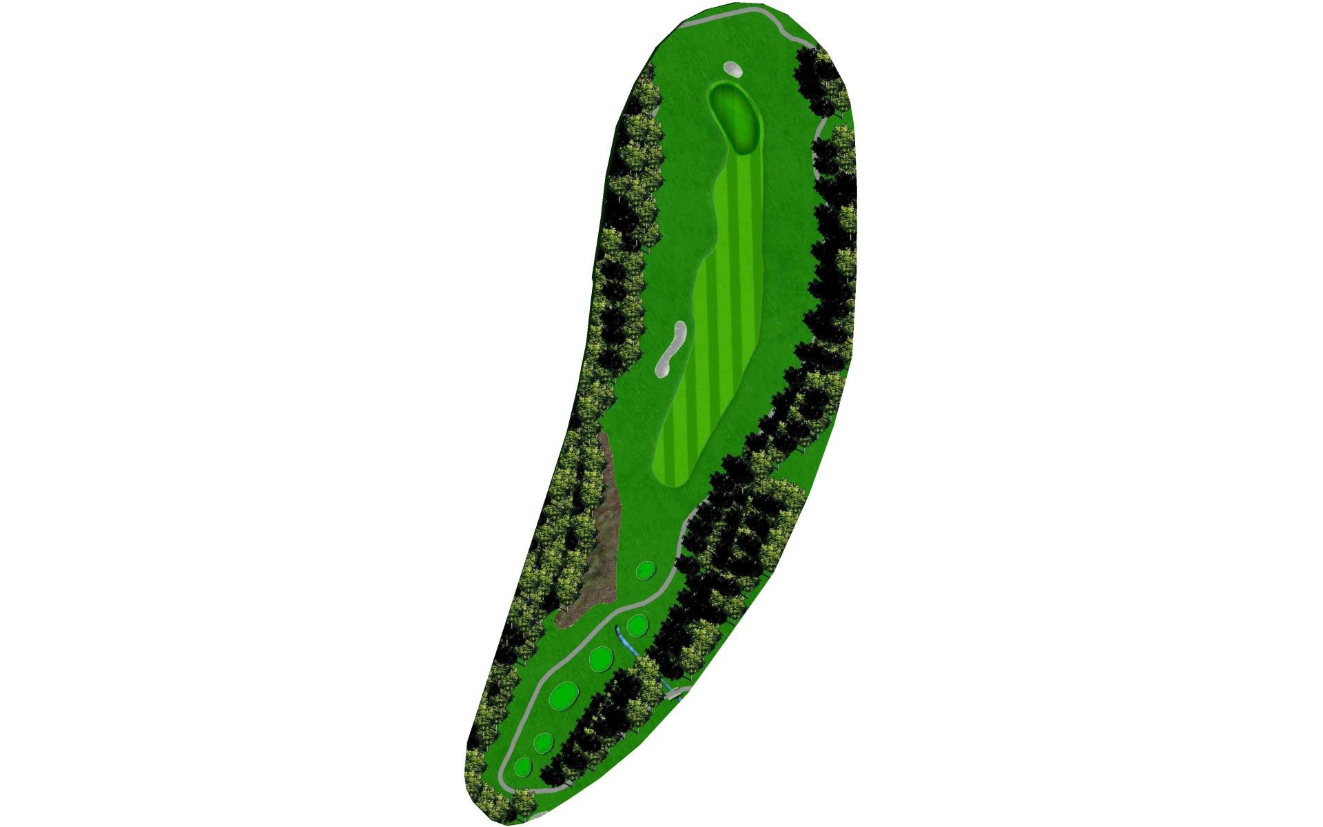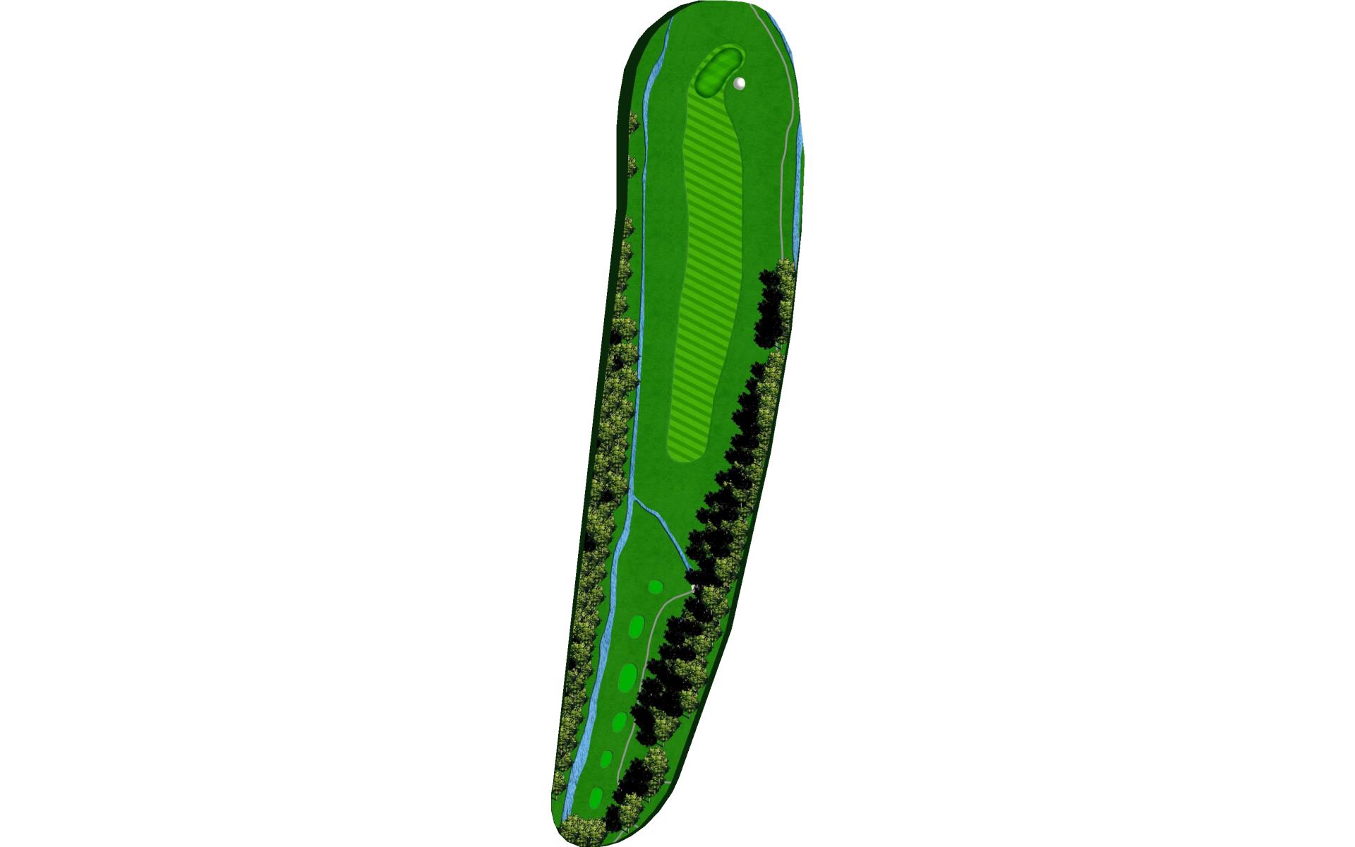 Short par 4. Taking less club off tee will still put you with a short iron to the green. The fairway slopes to the right, so keep that in mind when you’re deciding your starting line.