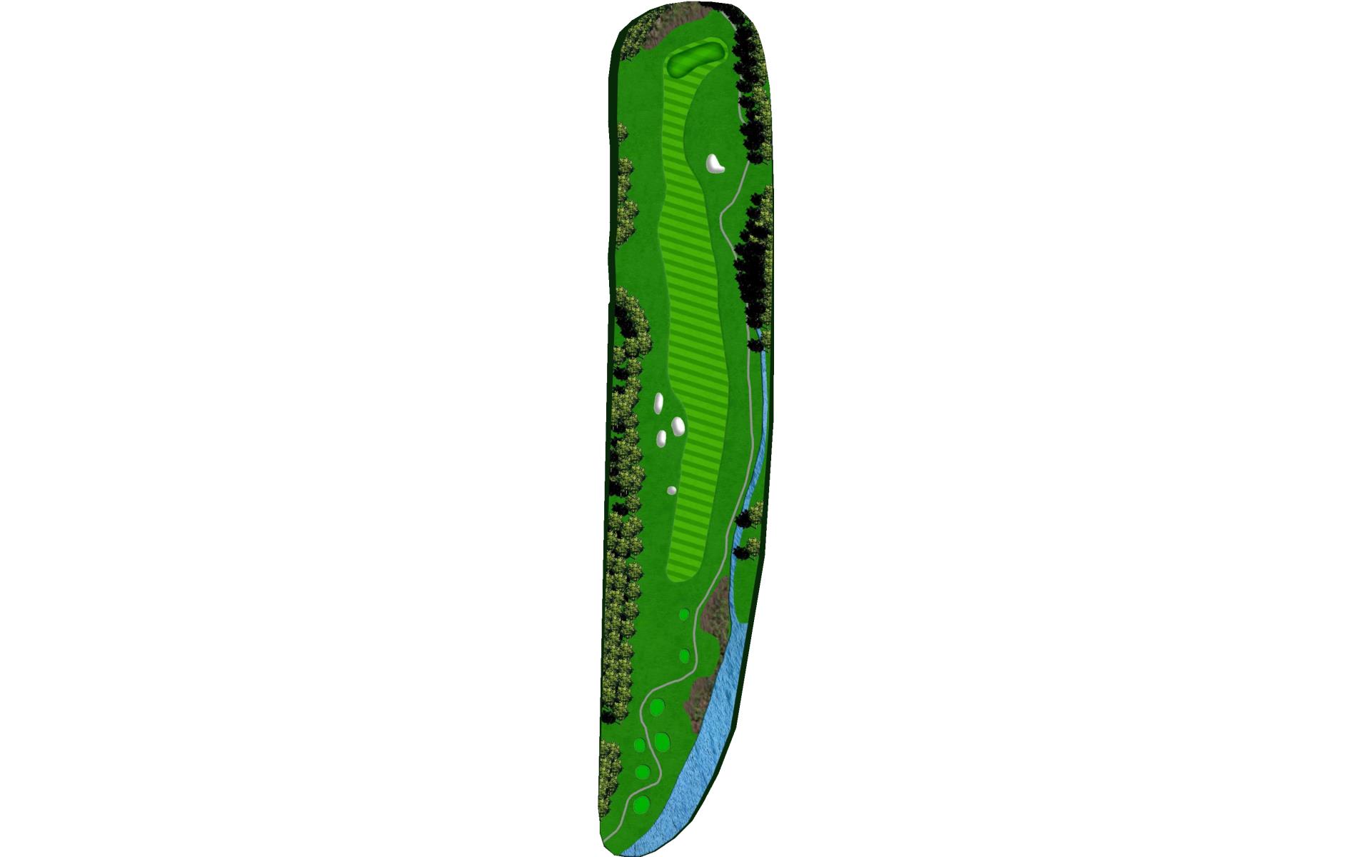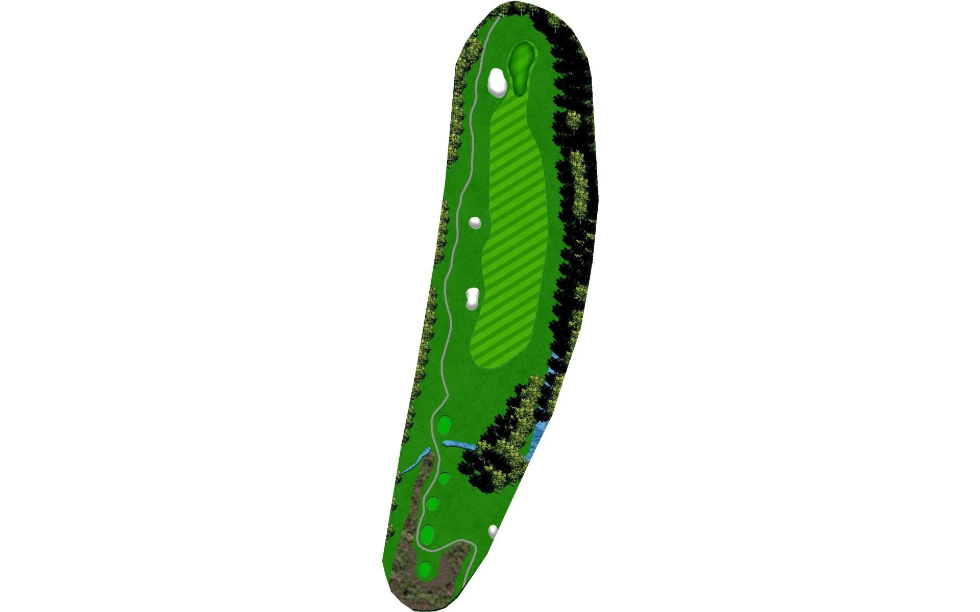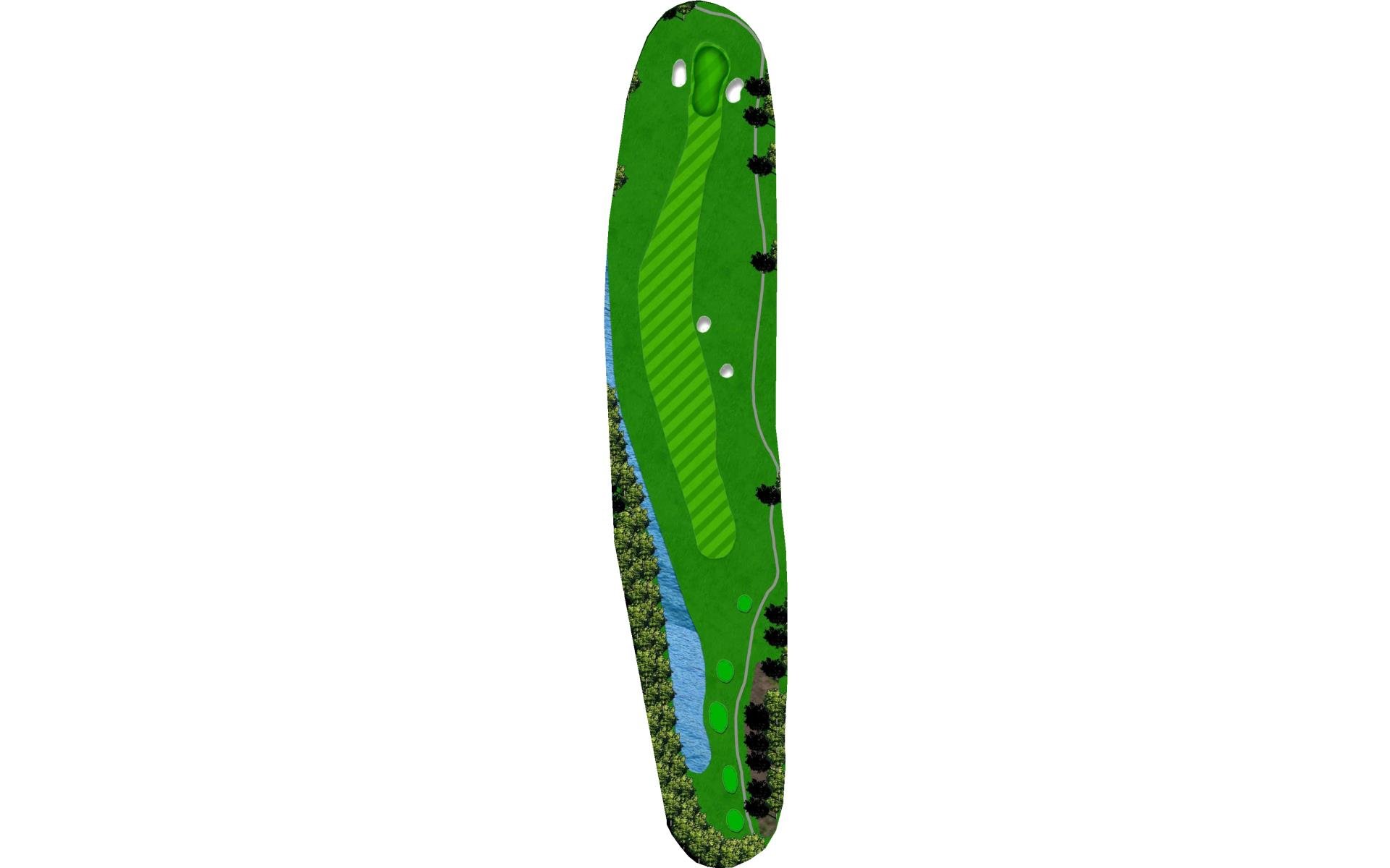 The #1 handicap hole. The pin location dictates your ideal placement in the fairway. A narrow, sloping green and a perfectly placed green side bunker, make your mid to long iron shot very difficult. Angle is everything here.