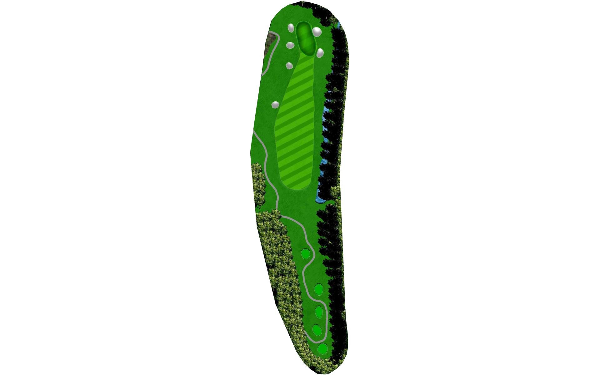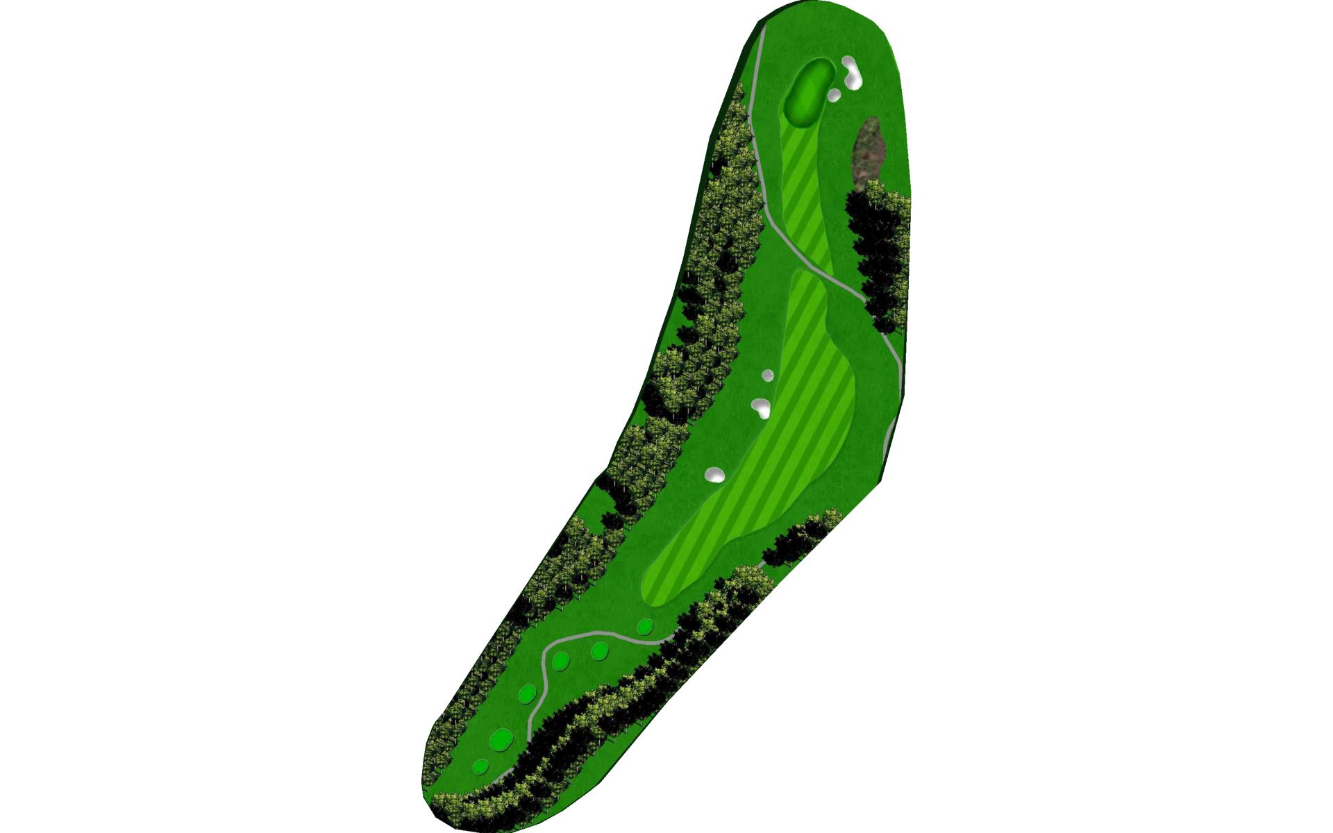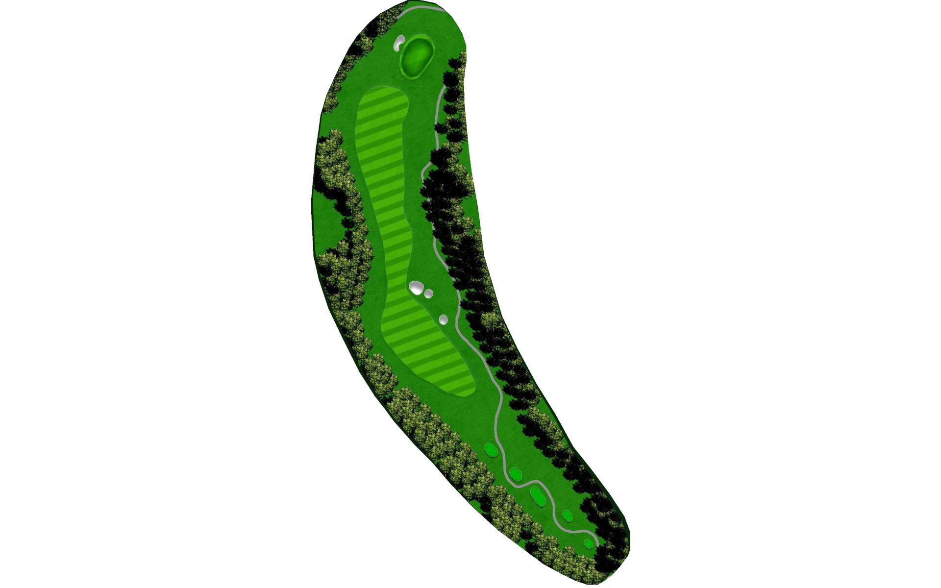 The #1 handicap hole. The pin location dictates your ideal placement in the fairway. A narrow, sloping green and a perfectly placed green side bunker, make your mid to long iron shot very difficult. Angle is everything here.