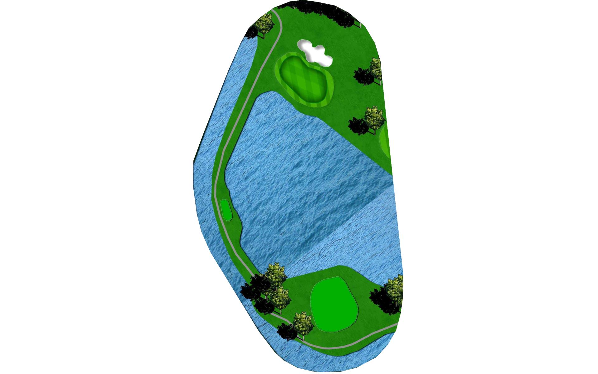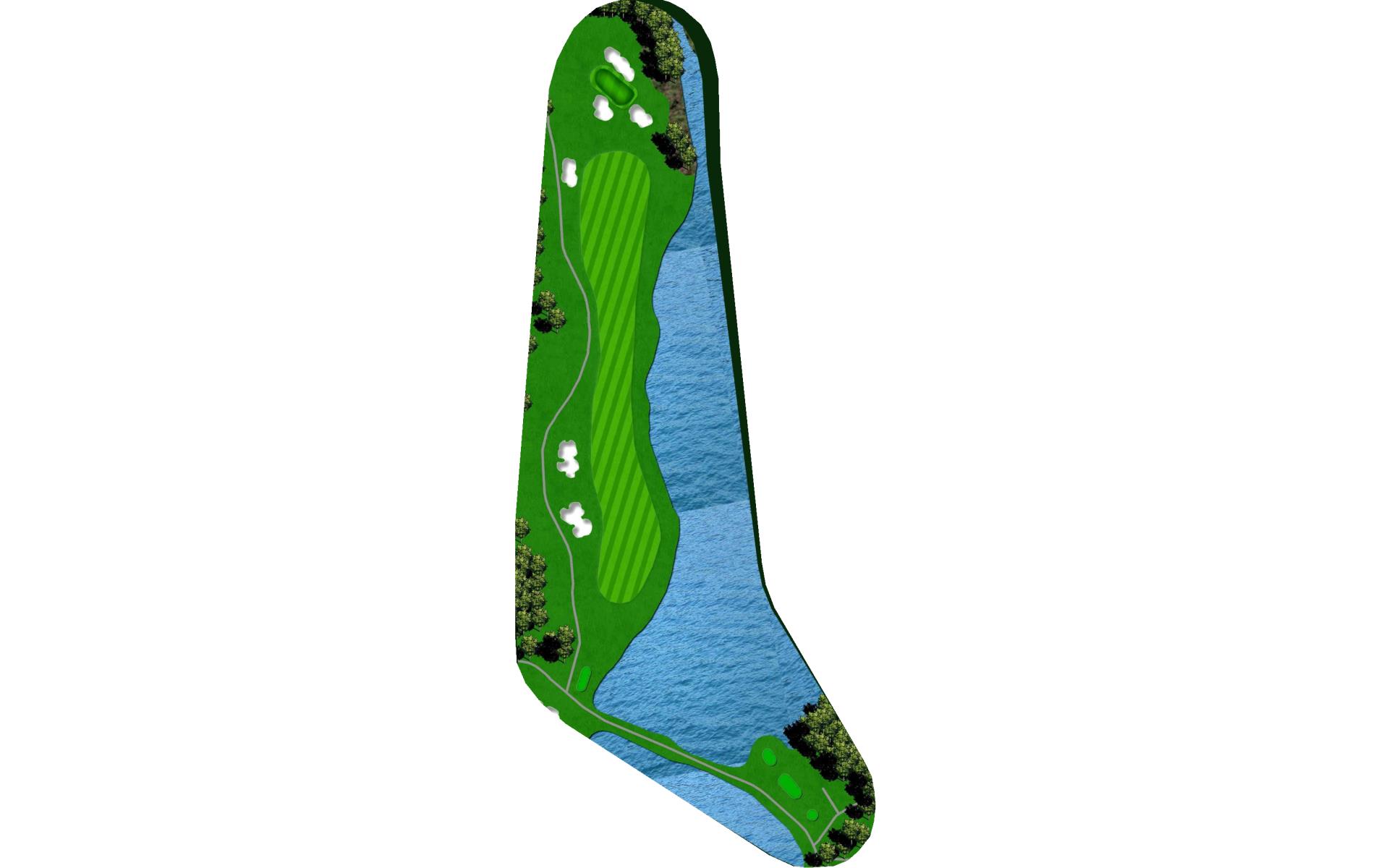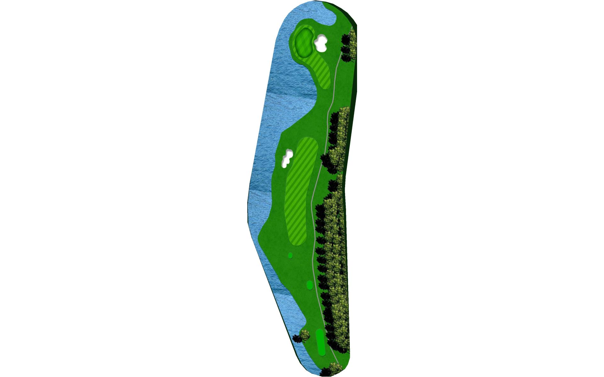 Running along the lake's edge, this par 4 turns gently to the right. The fairway runs out at around 140 yards. The approach shot is all carry over water with water protecting left and long of the green.