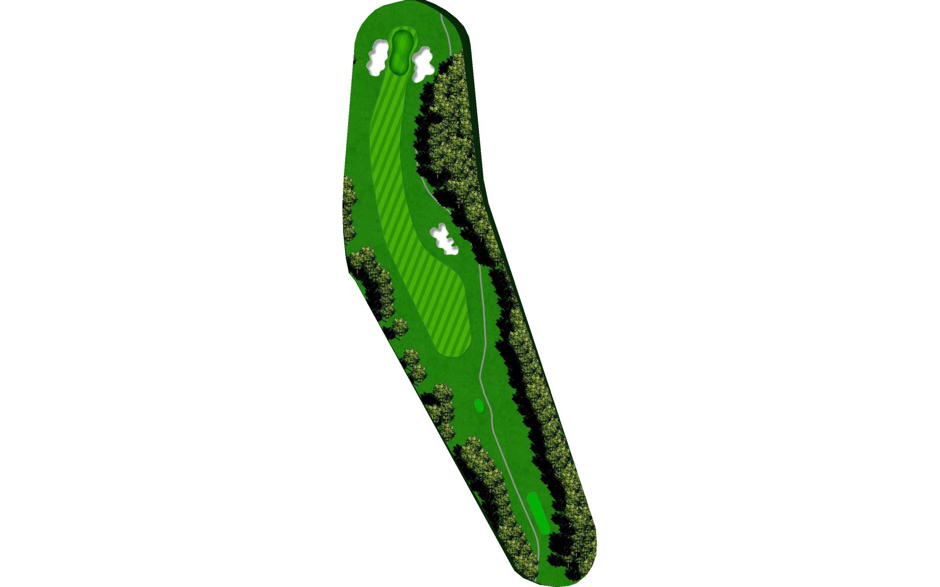Straightaway Par 5 with out-of-bound left and hazardous trees to the right. The large green is well guarded on all sides by bunkers.