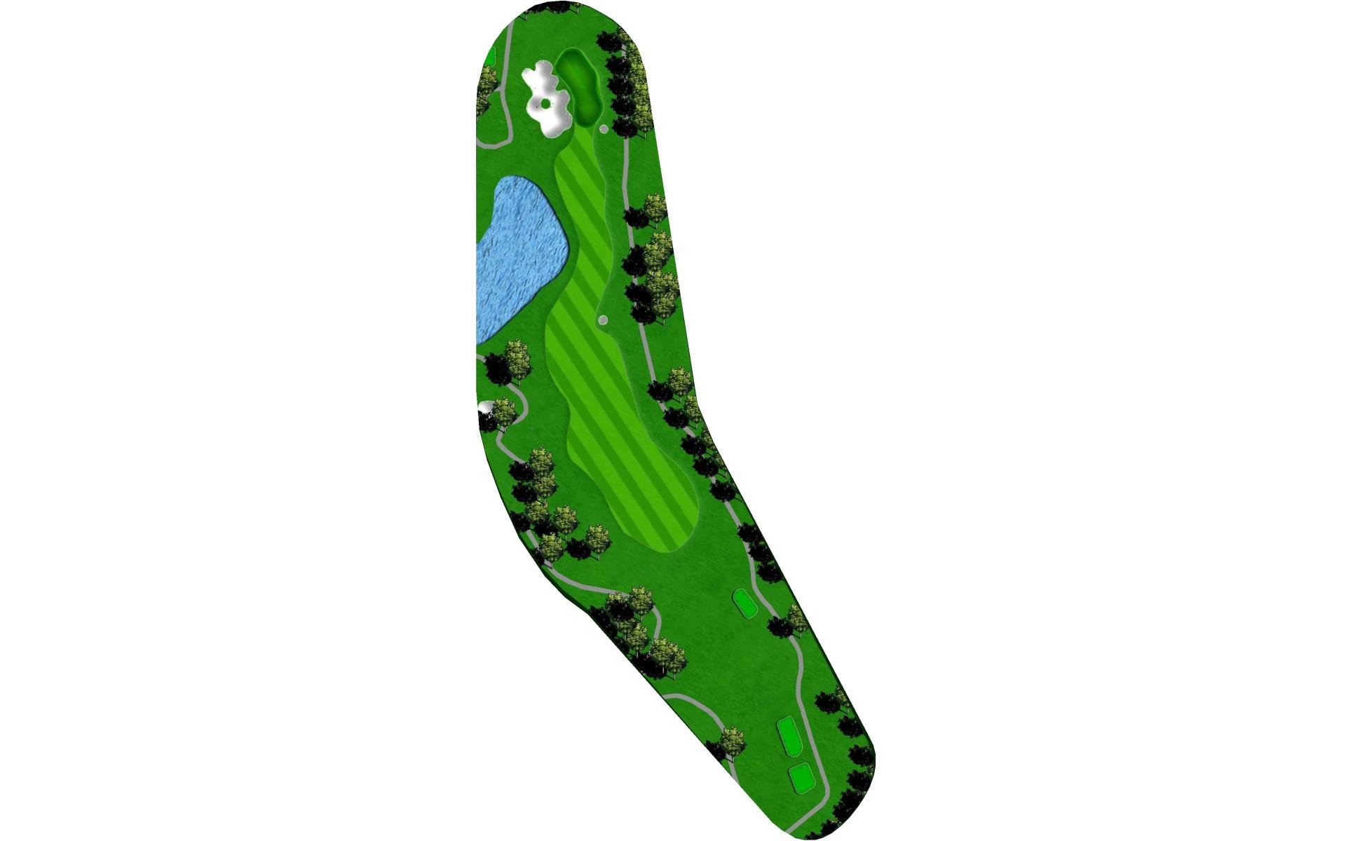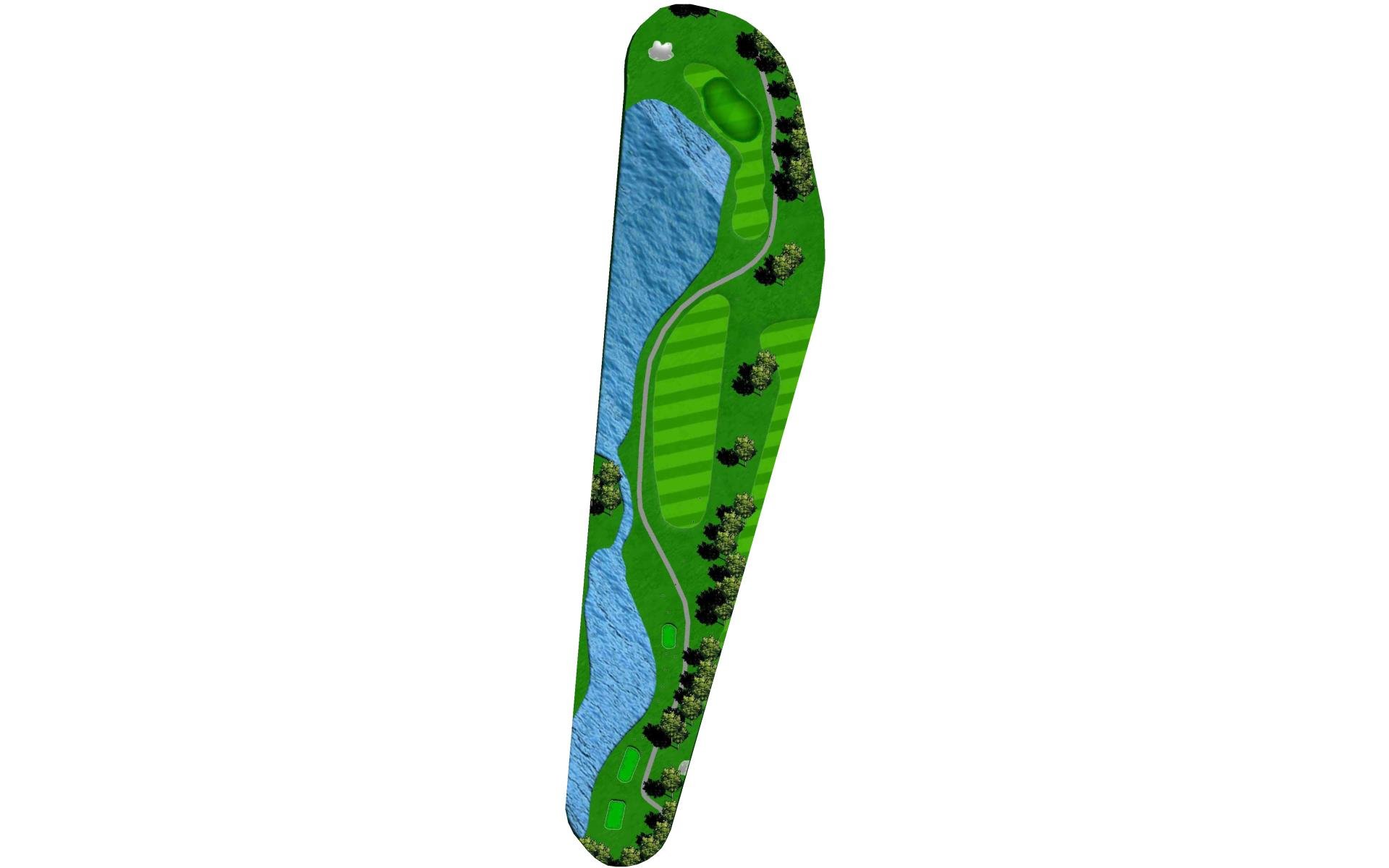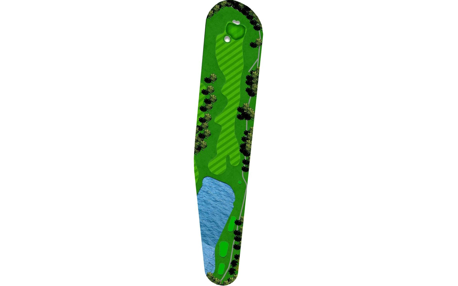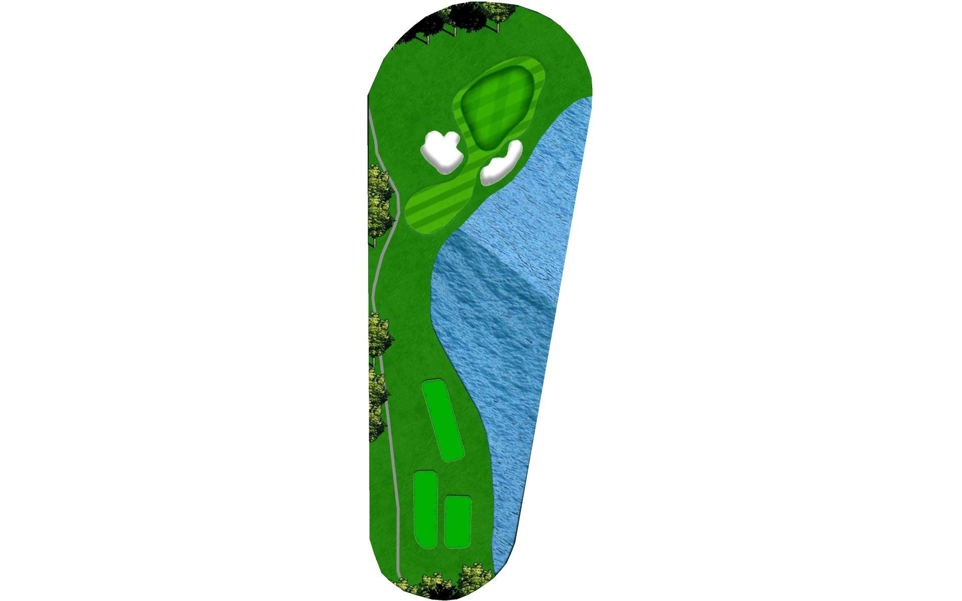 "Bagpipes" is a long par 4 that sets up for a challenging finish. A good drive leaves a long approach into yet another peninsula green. Extreme undulation in the middle parts of the green make placement on the second shot paramount to success with the putter.