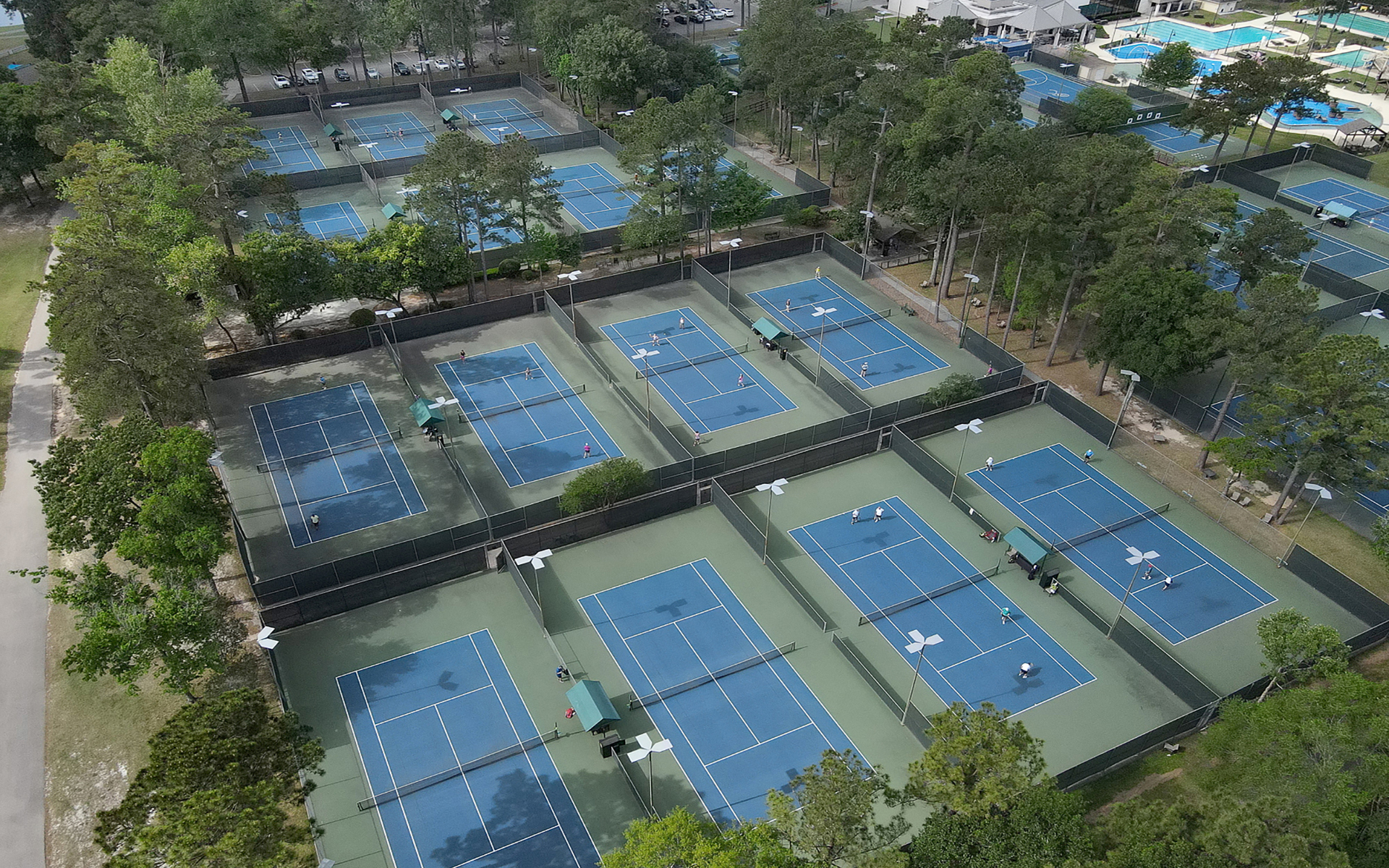 The Clubs of Kingwood has one of the largest and finest tennis complexes in Houston and the surrounding areas. The Kingwood tennis complex has 23 lighted, tournament-quality hard courts and six dedicated Houston pickleball courts. Each Kingwood tennis court is individually fenced and supplied with windscreens for your convenience. Water fountains and on-court water coolers are spaced throughout the complex. Complete adult and junior developmental pathways, private and group lessons, and social and competitive events are available to Members.