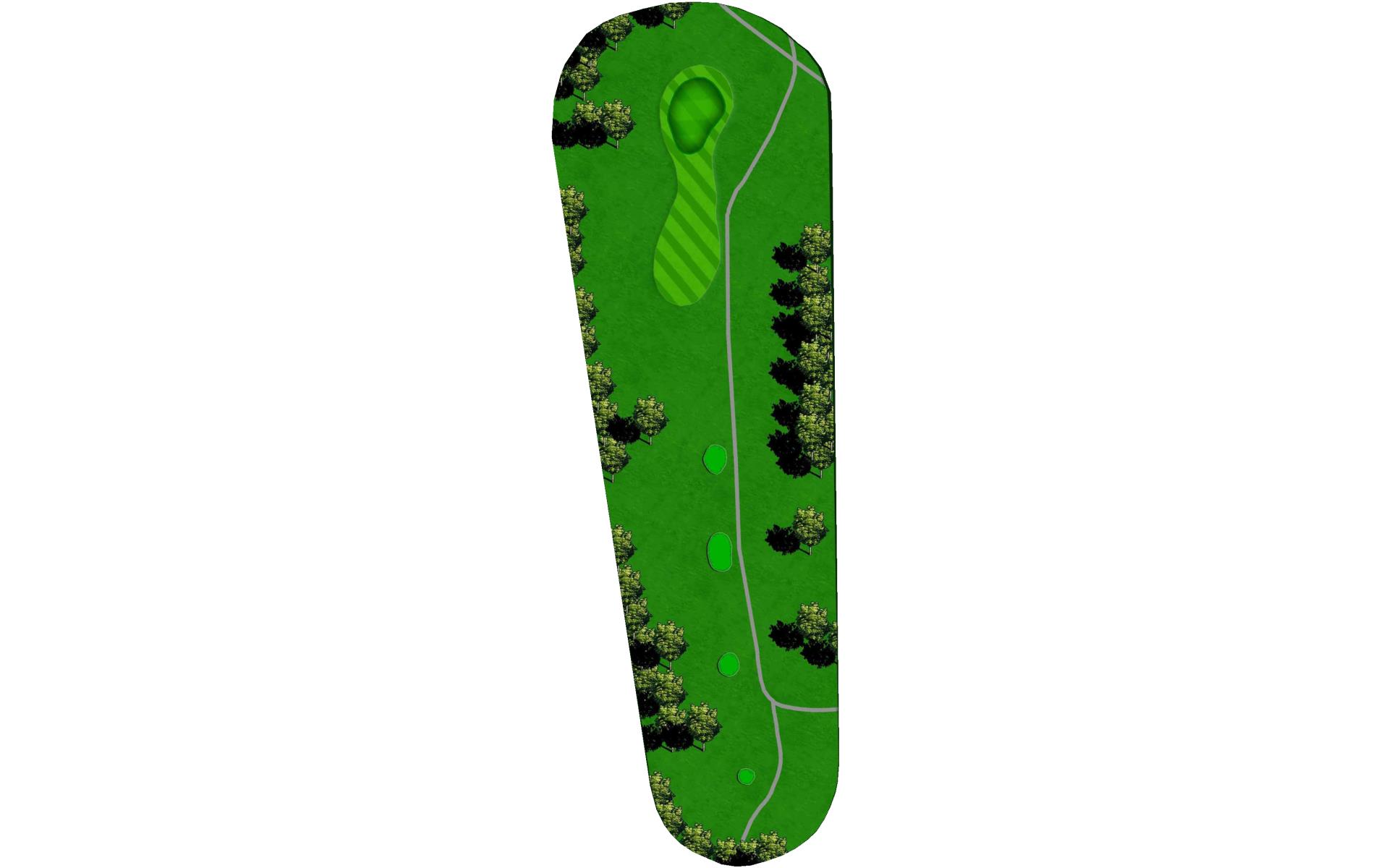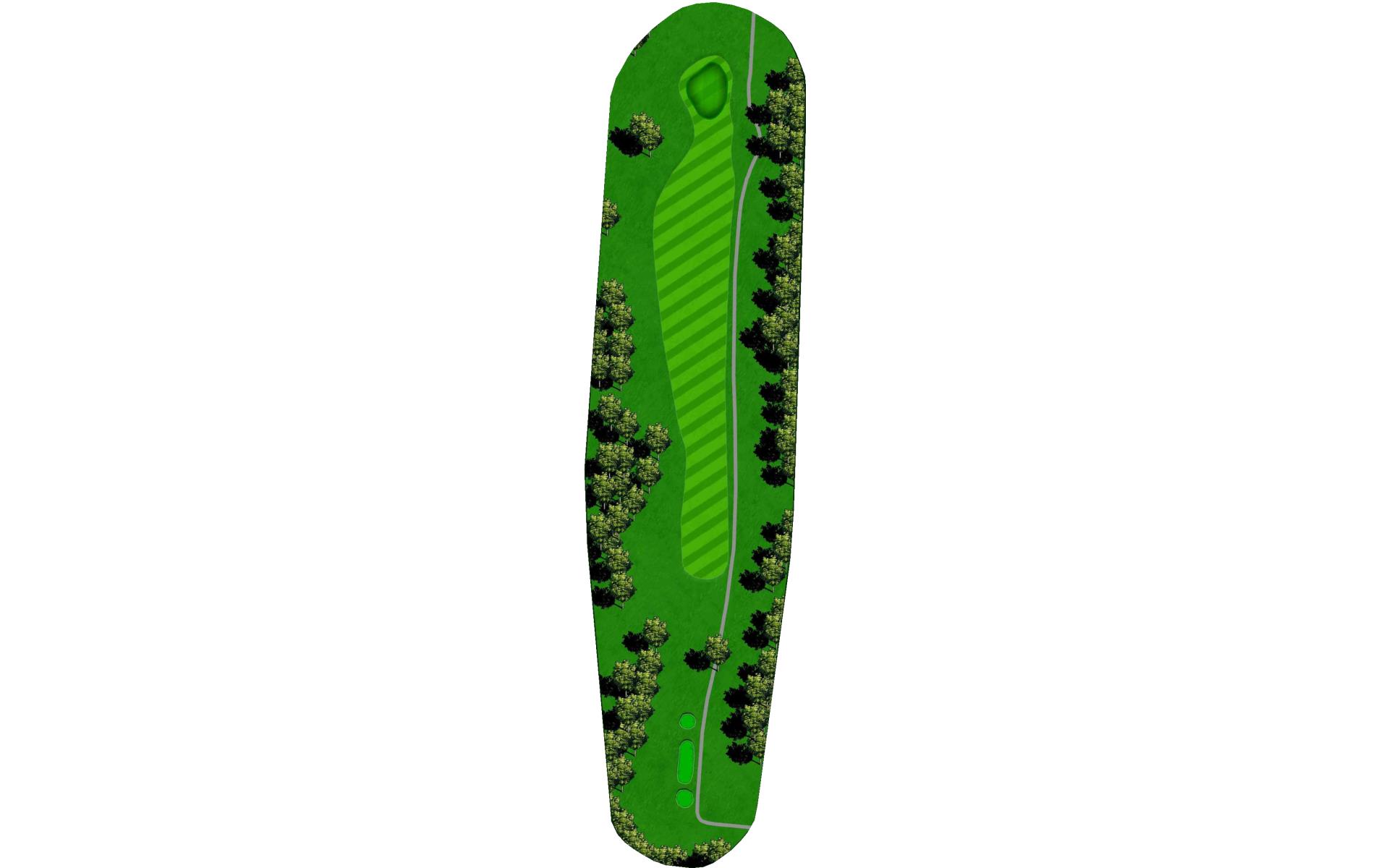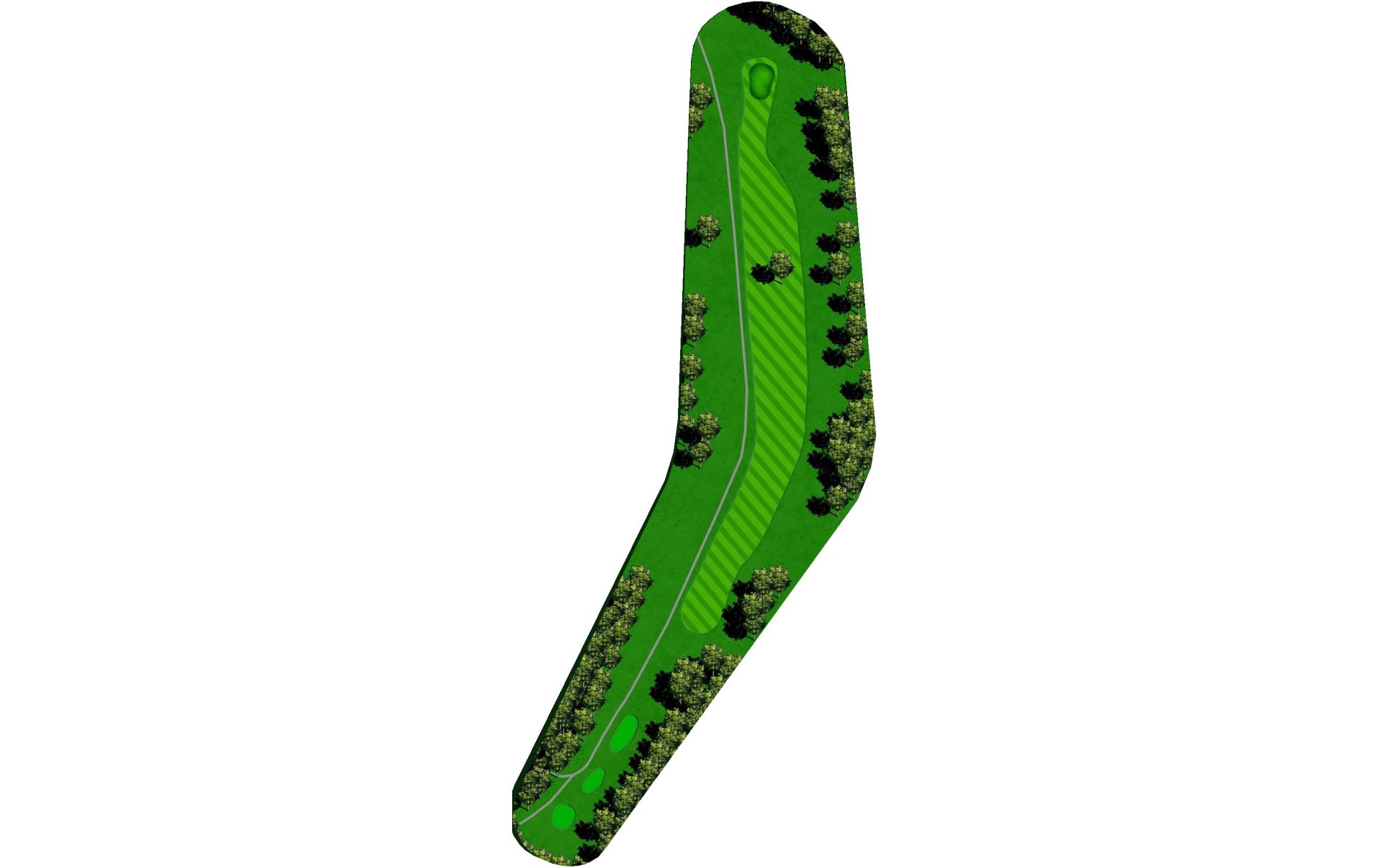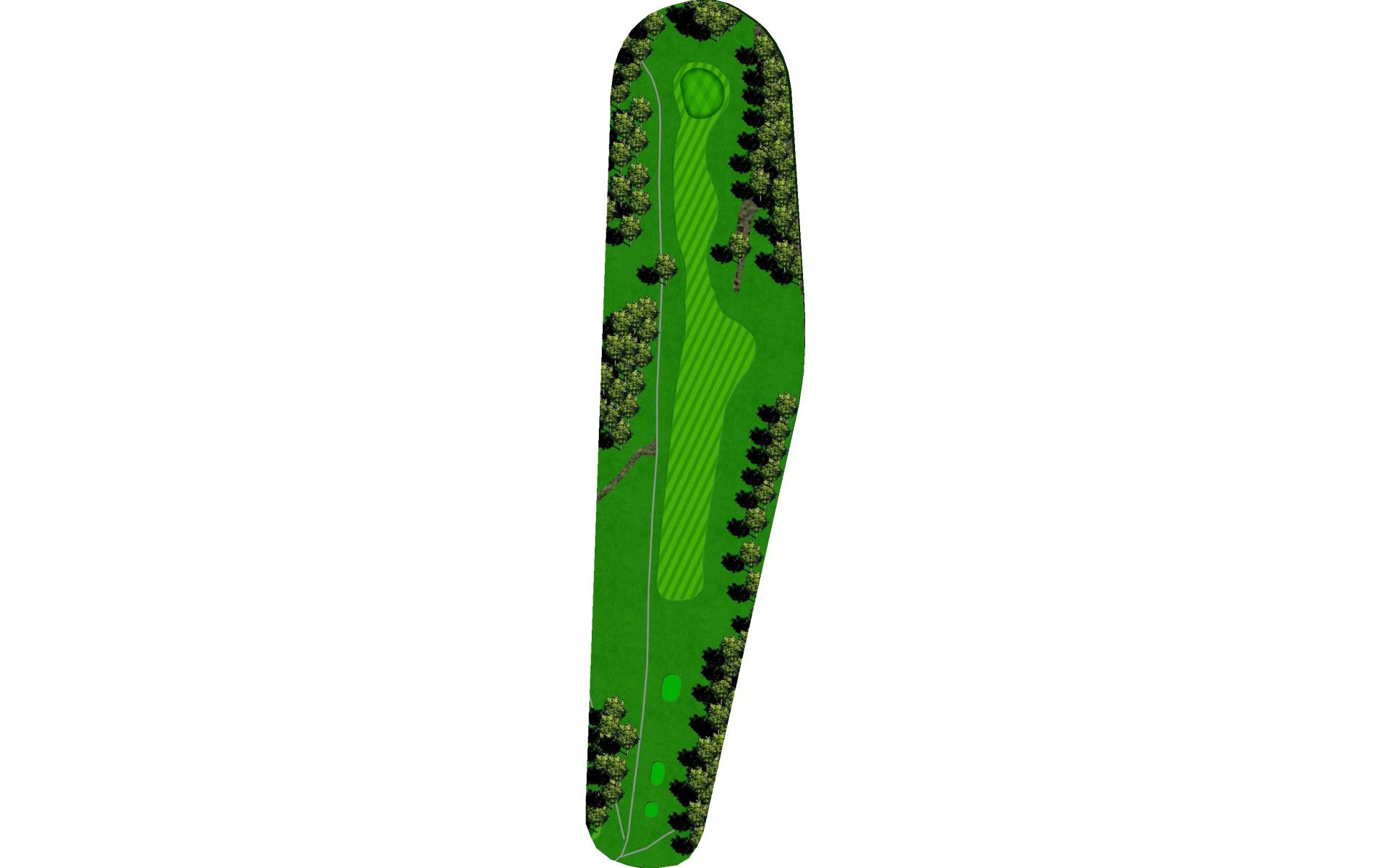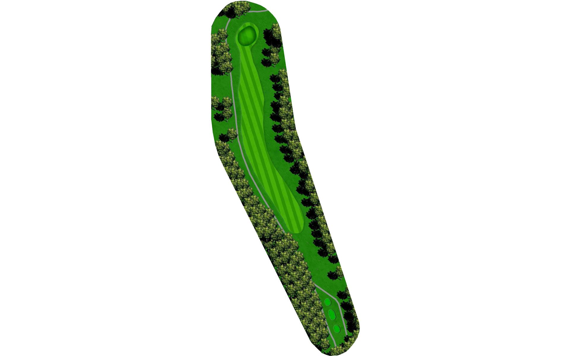 The straightest hole on the golf course, aim directly at the 150 yd. marker off the tee.The green is deeper than it appears from the fairway, so club selection is important. A shot finding the green will be rewarded with a fairly flat, straight putt.