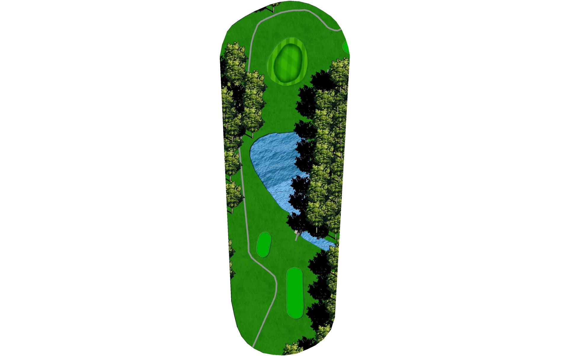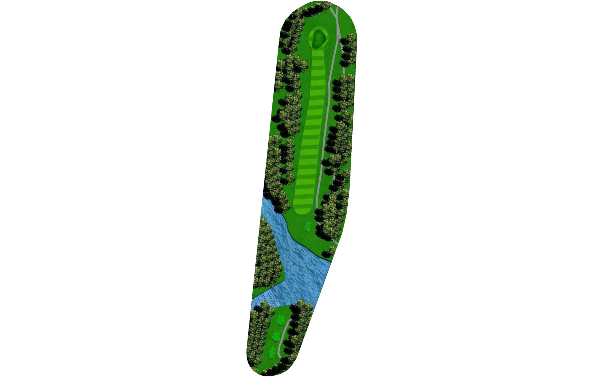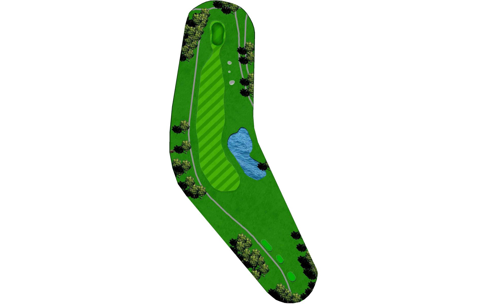 Time to finish the inward nine with a birdie! This green is reachable by long hitters if a tail wind is present, short hitters should play to the left of the water hazard. A split level green awaits your approach shot.