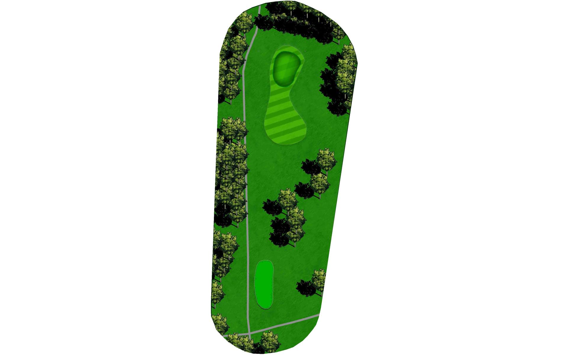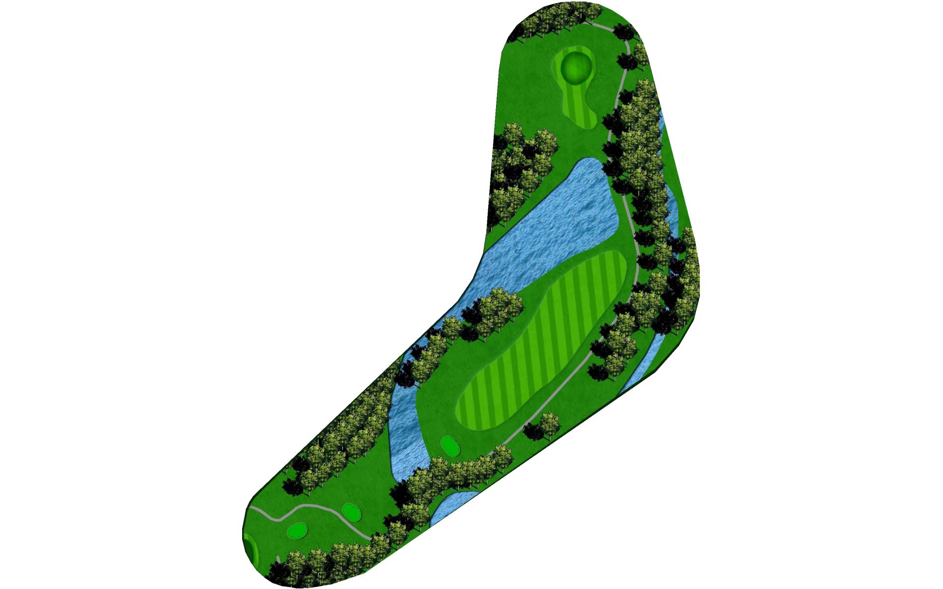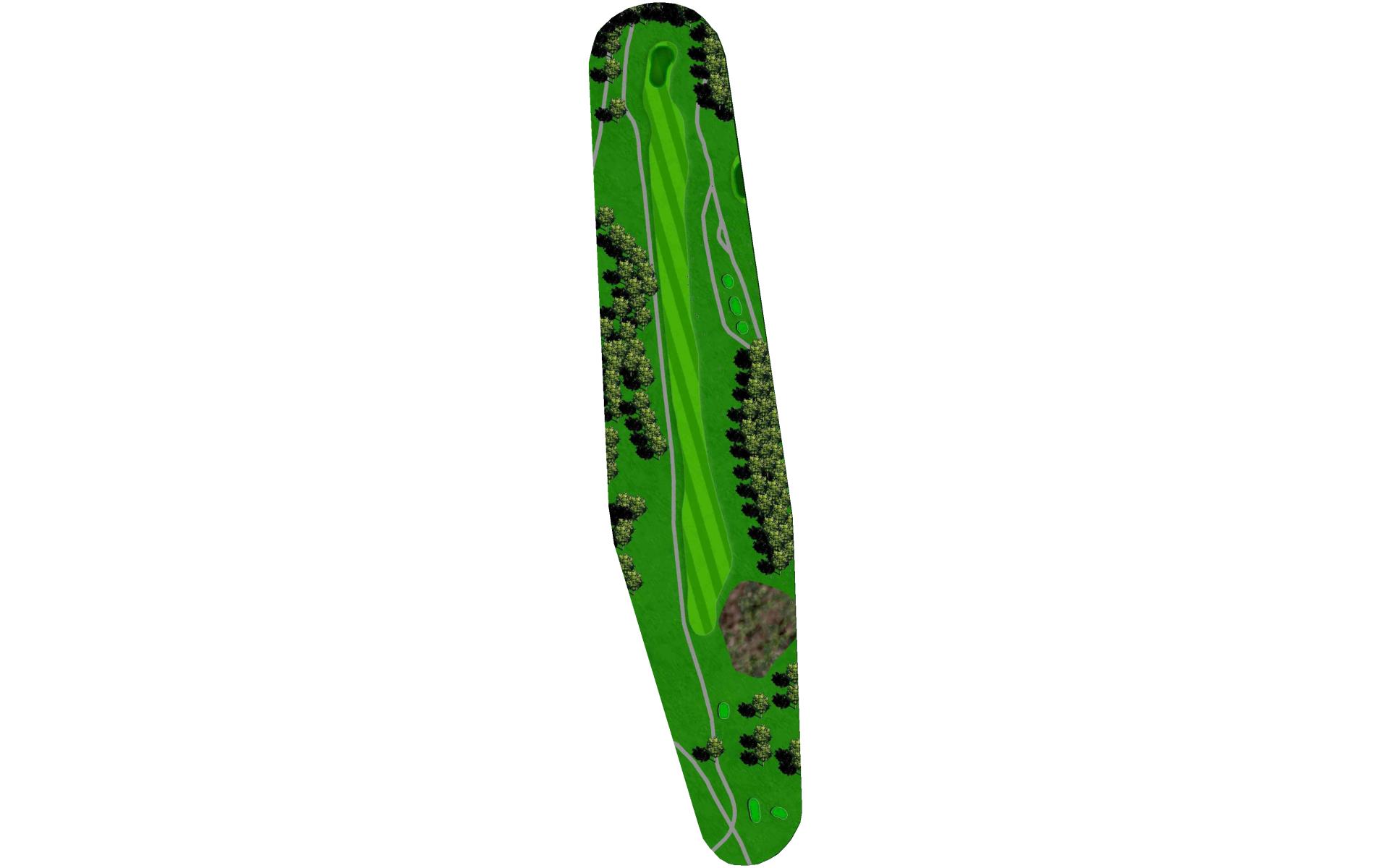 Time to finish the inward nine with a birdie! This green is reachable by long hitters if a tail wind is present, short hitters should play to the left of the water hazard. A split level green awaits your approach shot.