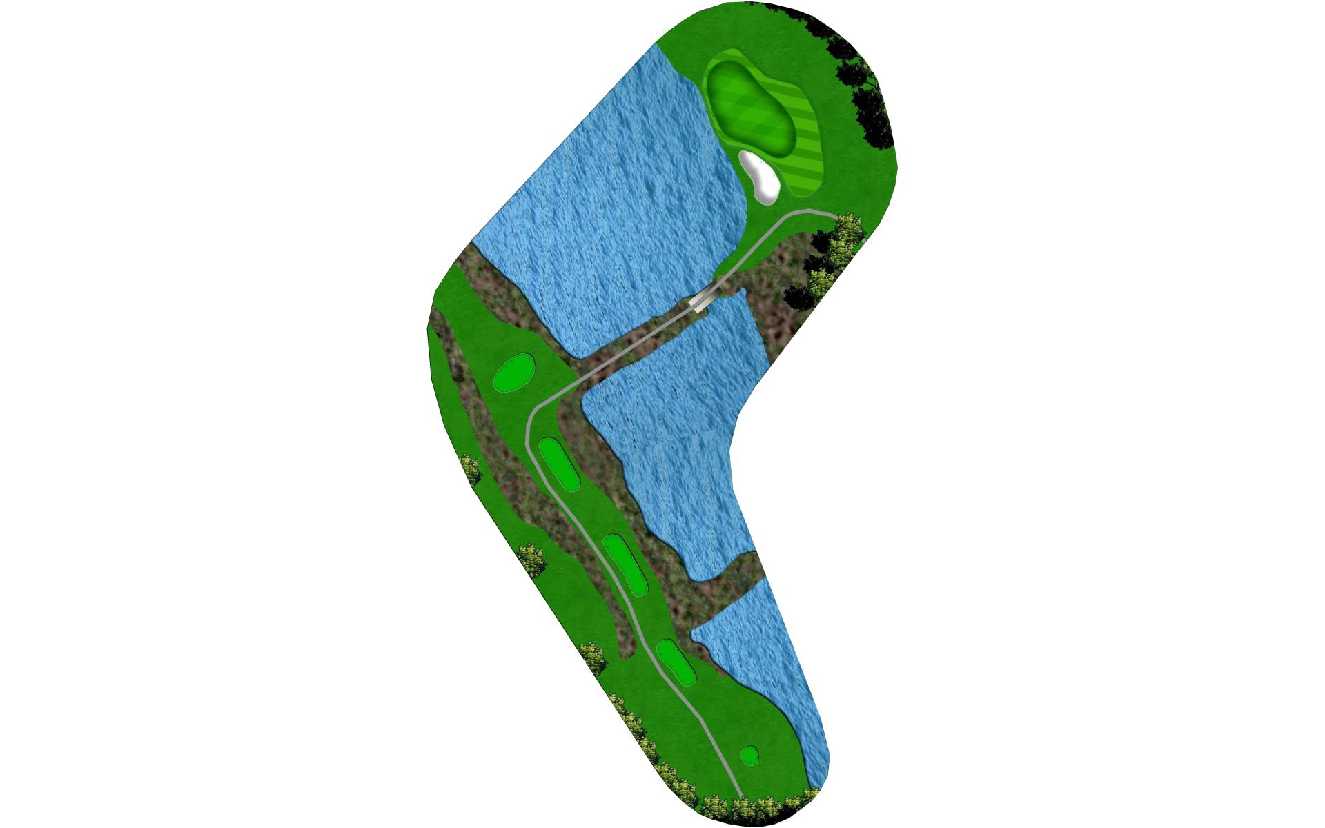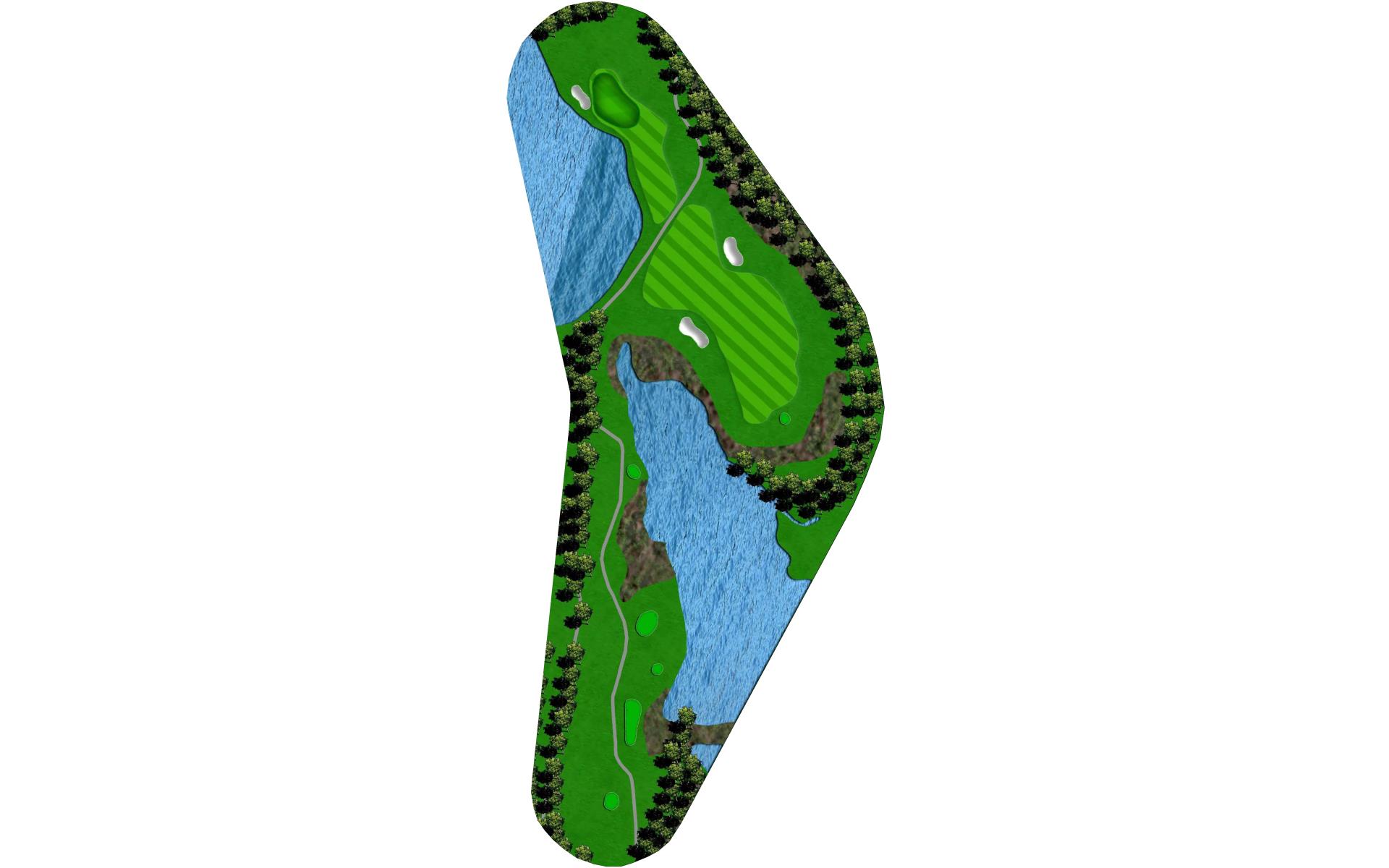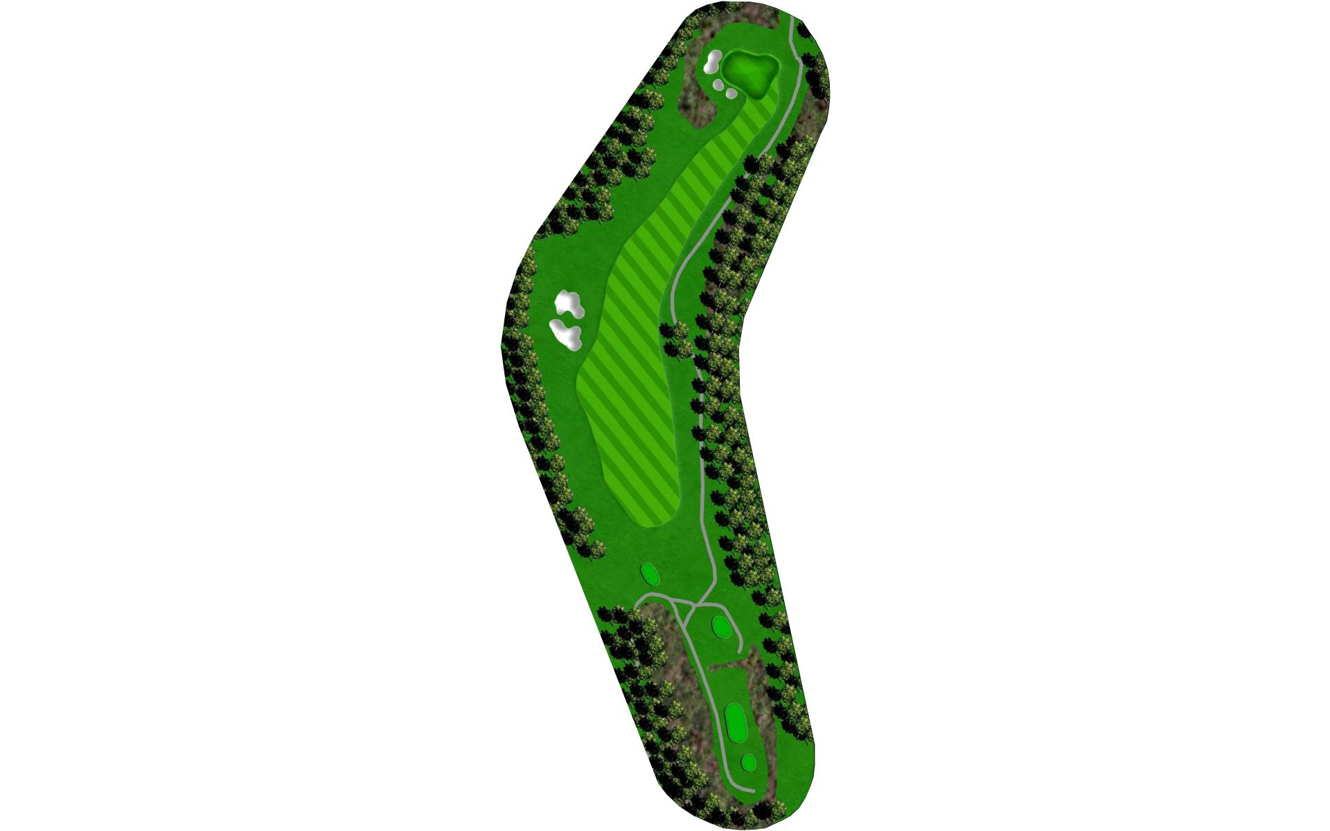 Two good shots are needed on this risk-reward dogleg left. The drive must carry the lake and a large fairway bunker to a slightly elevated fairway, but stay short of the bunker on the far side. Shorter hitters will play right of the bunkers and have a mid-iron to the green but a longer carry is left of the bunkers and leaves a short-iron approach. The lake is still in play left of the green on the second shot, as is a bunker, and the steep slope on this green (tilted toward the front left) means you don’t want to putt from above the hole.
